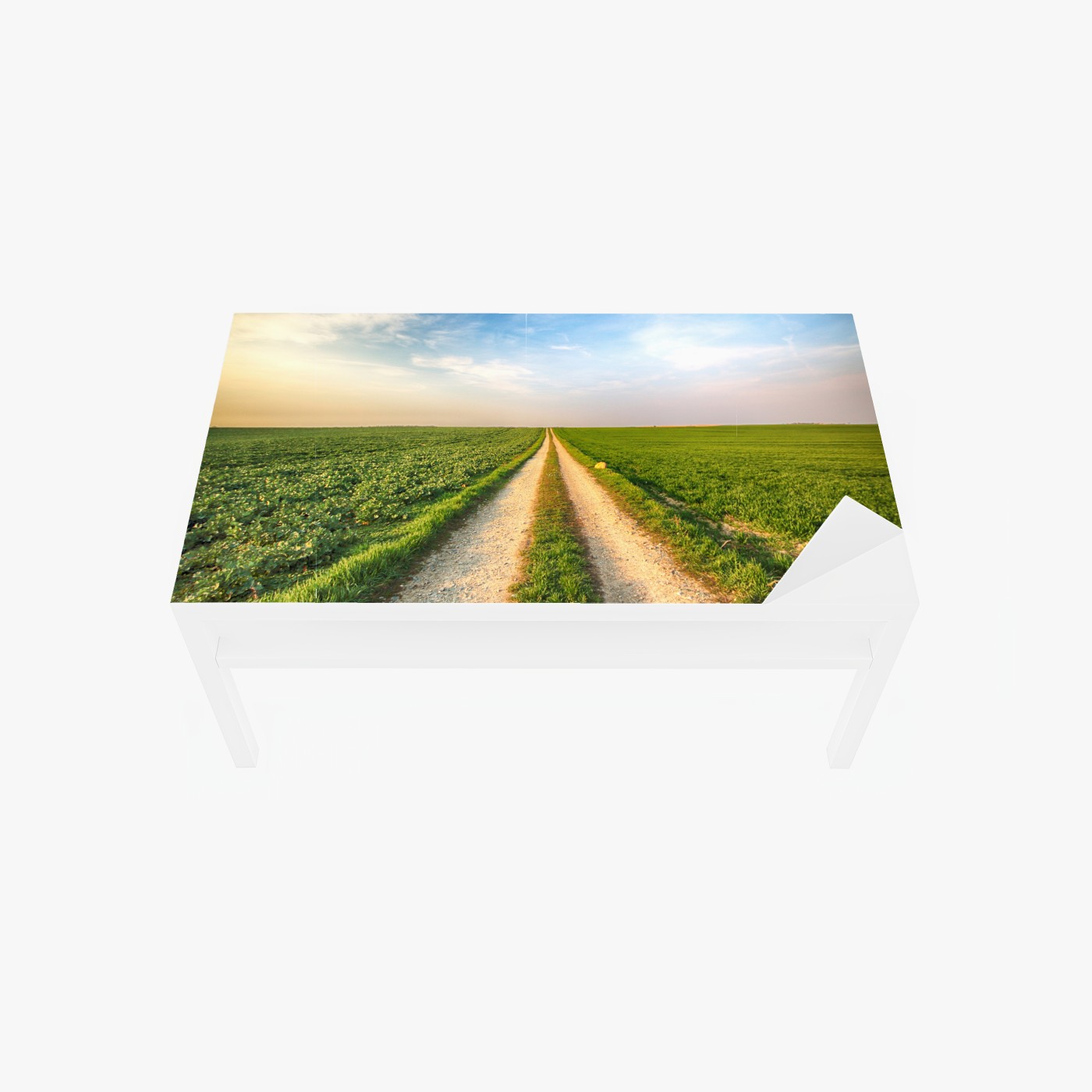 Tischaufkleber und Schreibtischaufkleber Feldweg durch grüne felder