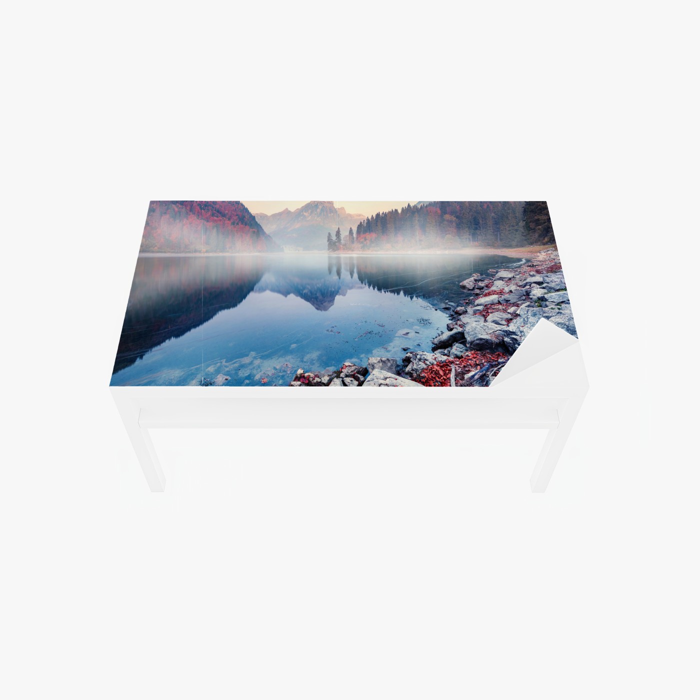 Tischaufkleber und Schreibtischaufkleber Nebliger herbstmorgen am Obersee, Schweizer Alpen