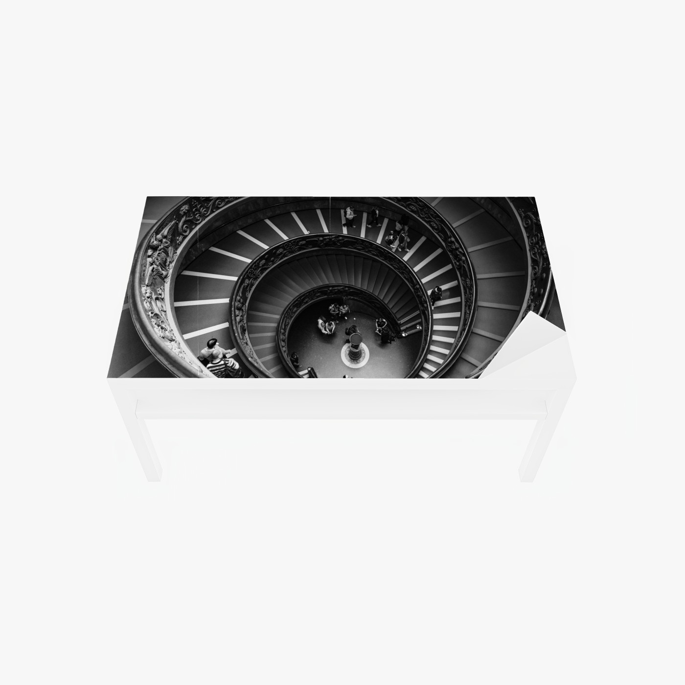 Tischaufkleber und Schreibtischaufkleber Dramatische spiraltreppe in monochrom