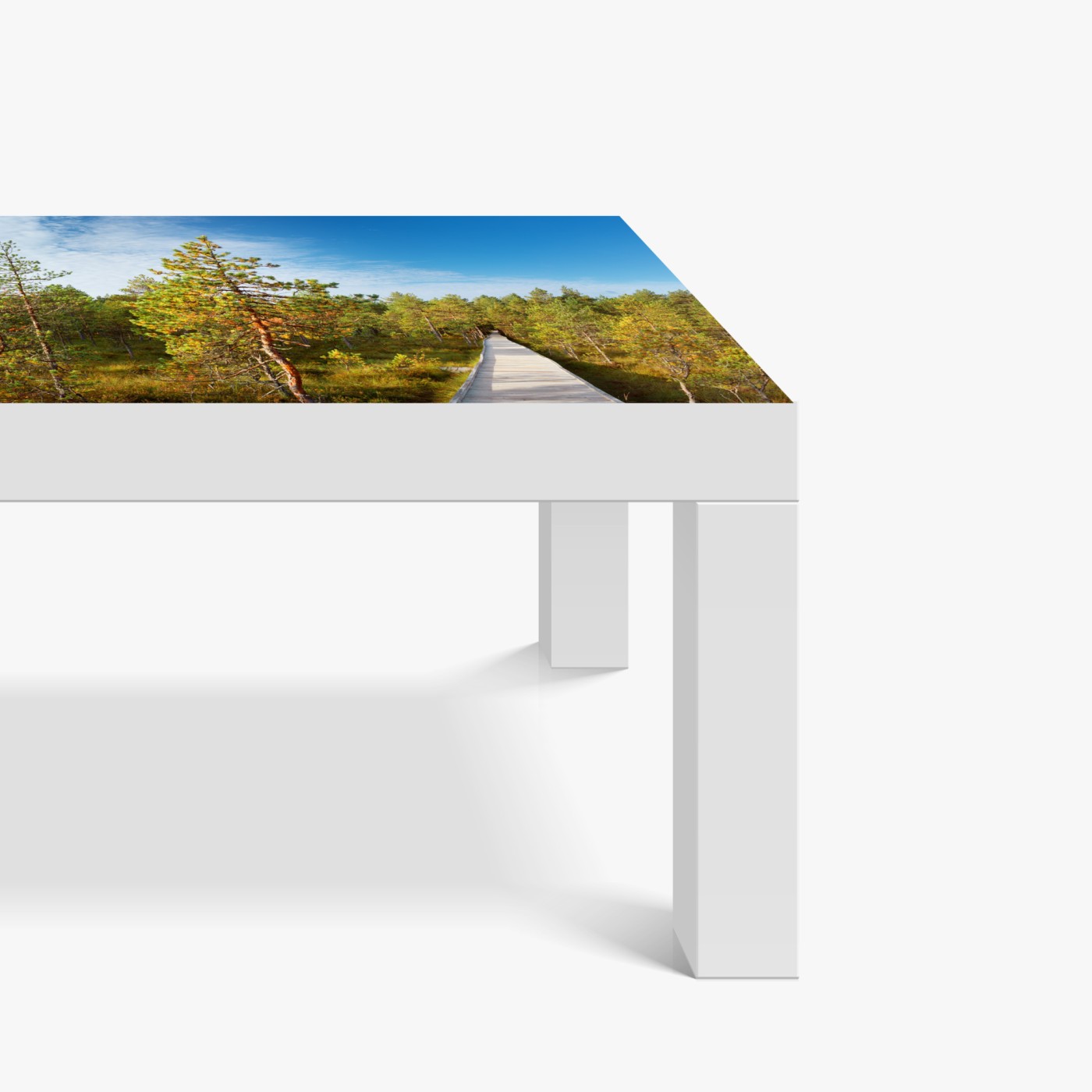 Tischaufkleber und Schreibtischaufkleber Sonniger steg durch den kiefernwald