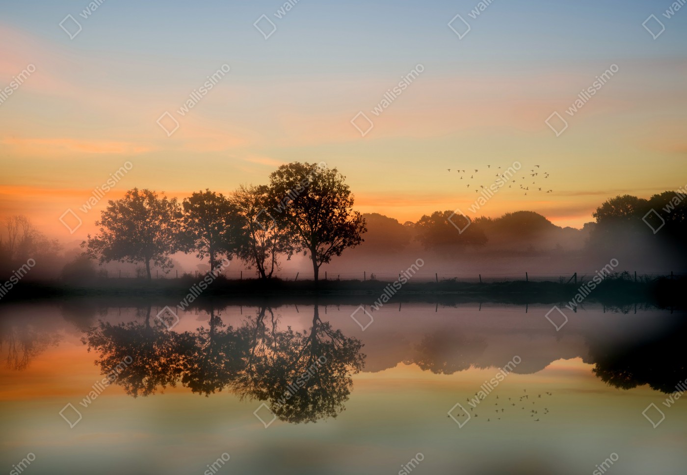 Tischaufkleber und Schreibtischaufkleber Nebliger herbstlicher sonnenaufgang über Englischer landschaft