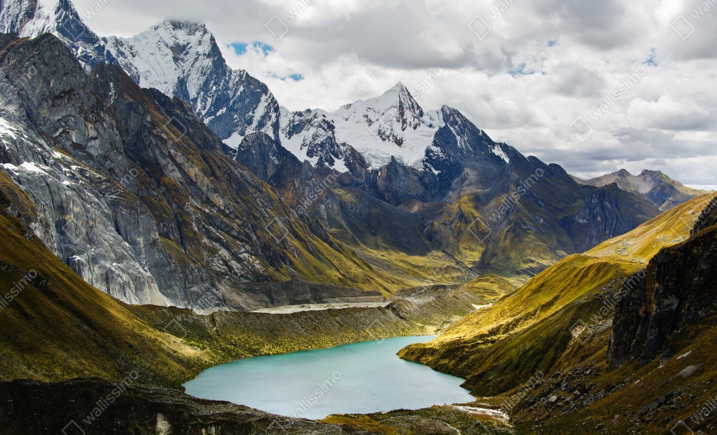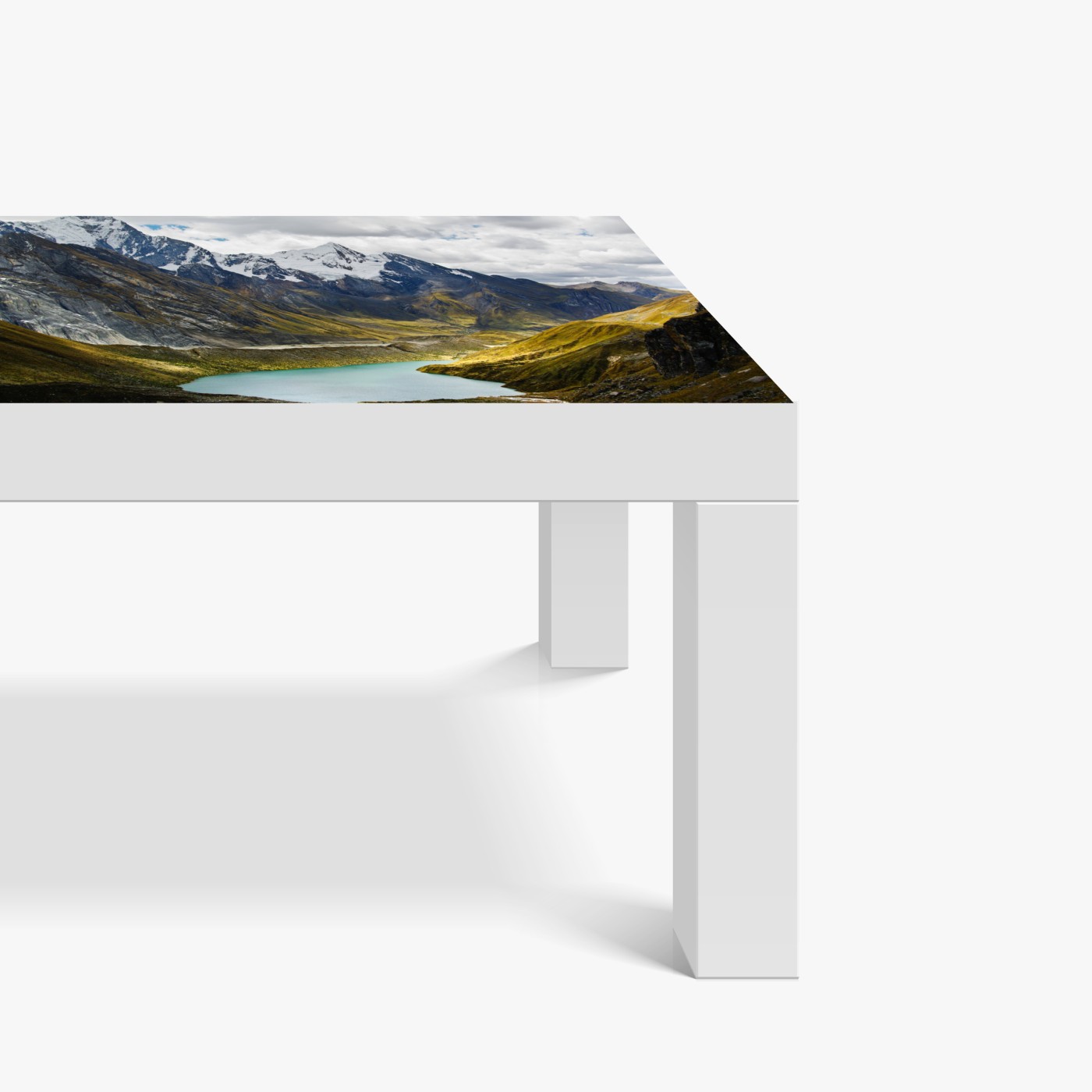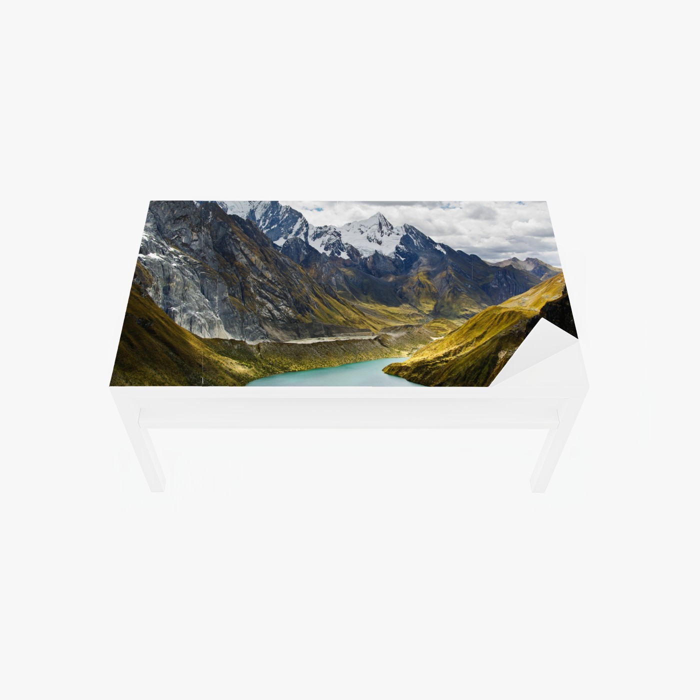 Tischaufkleber und Schreibtischaufkleber Türkisblauer bergsee unter schneegipfeln