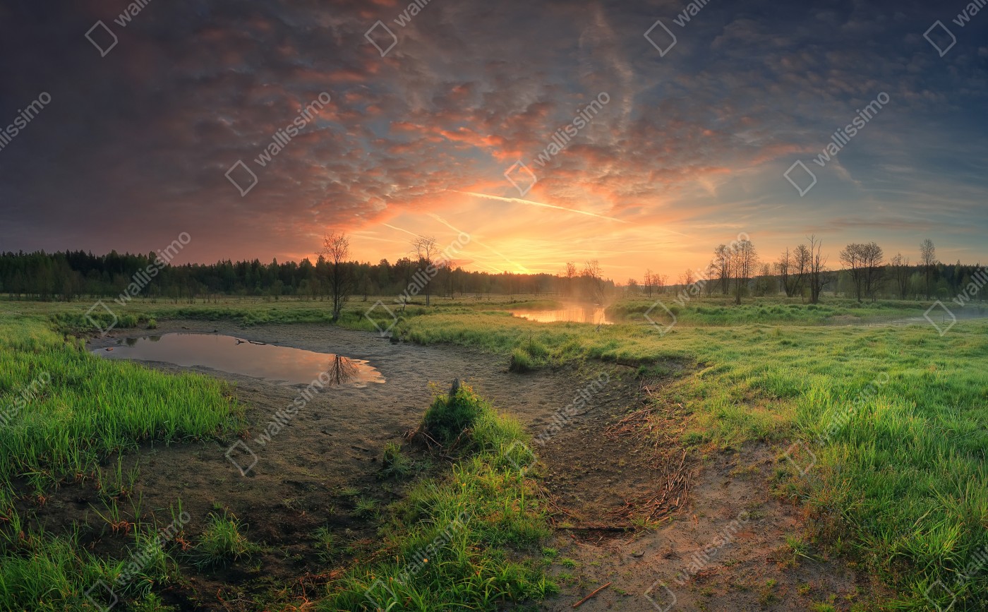 Tischaufkleber und Schreibtischaufkleber Sonnenuntergang über einer ruhigen wiese