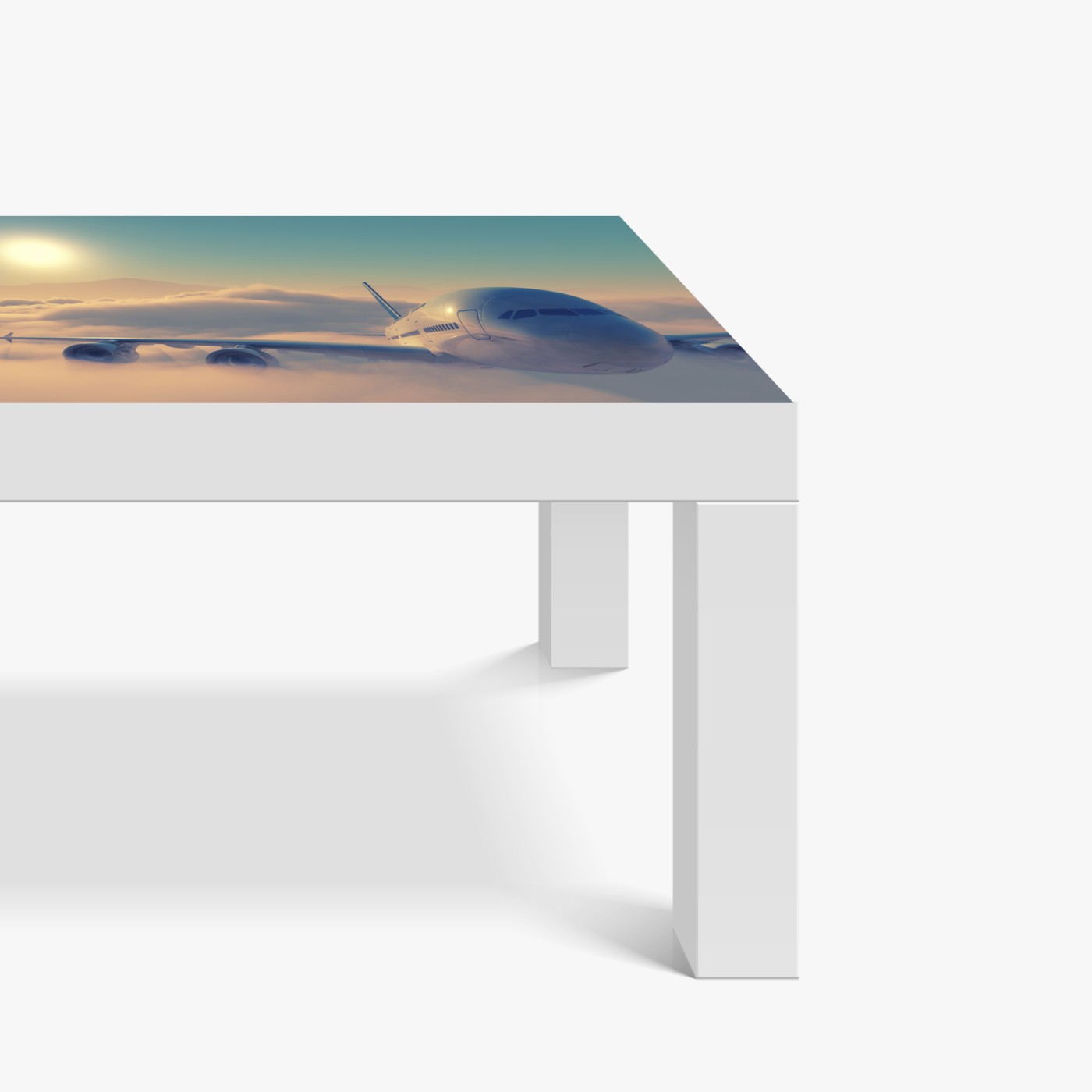 Tischaufkleber und Schreibtischaufkleber Flugzeug über den wolken im morgengrauen