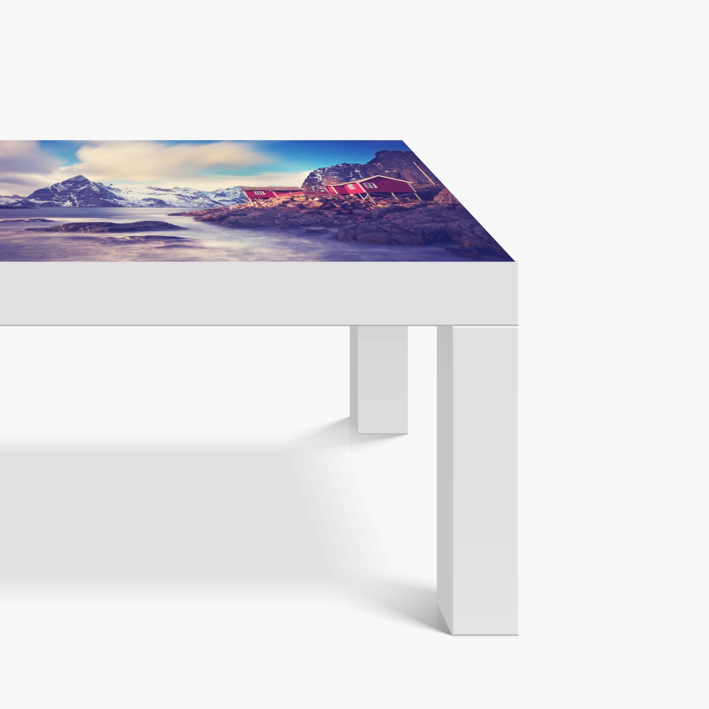 Tischaufkleber und Schreibtischaufkleber Küstengebirge mit roten hütten