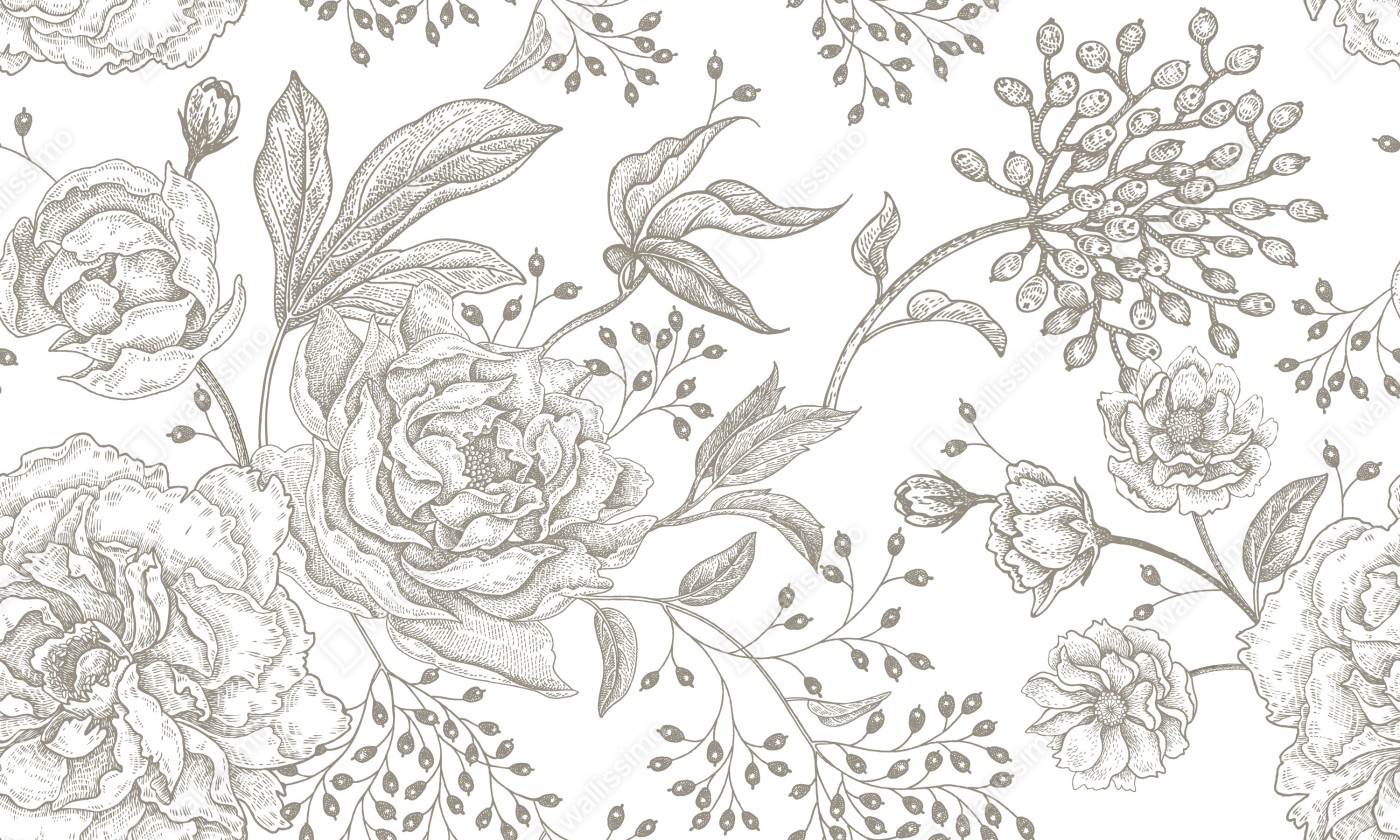 Tischaufkleber und Schreibtischaufkleber Zartes botanisches blumenmuster im vintage-stil