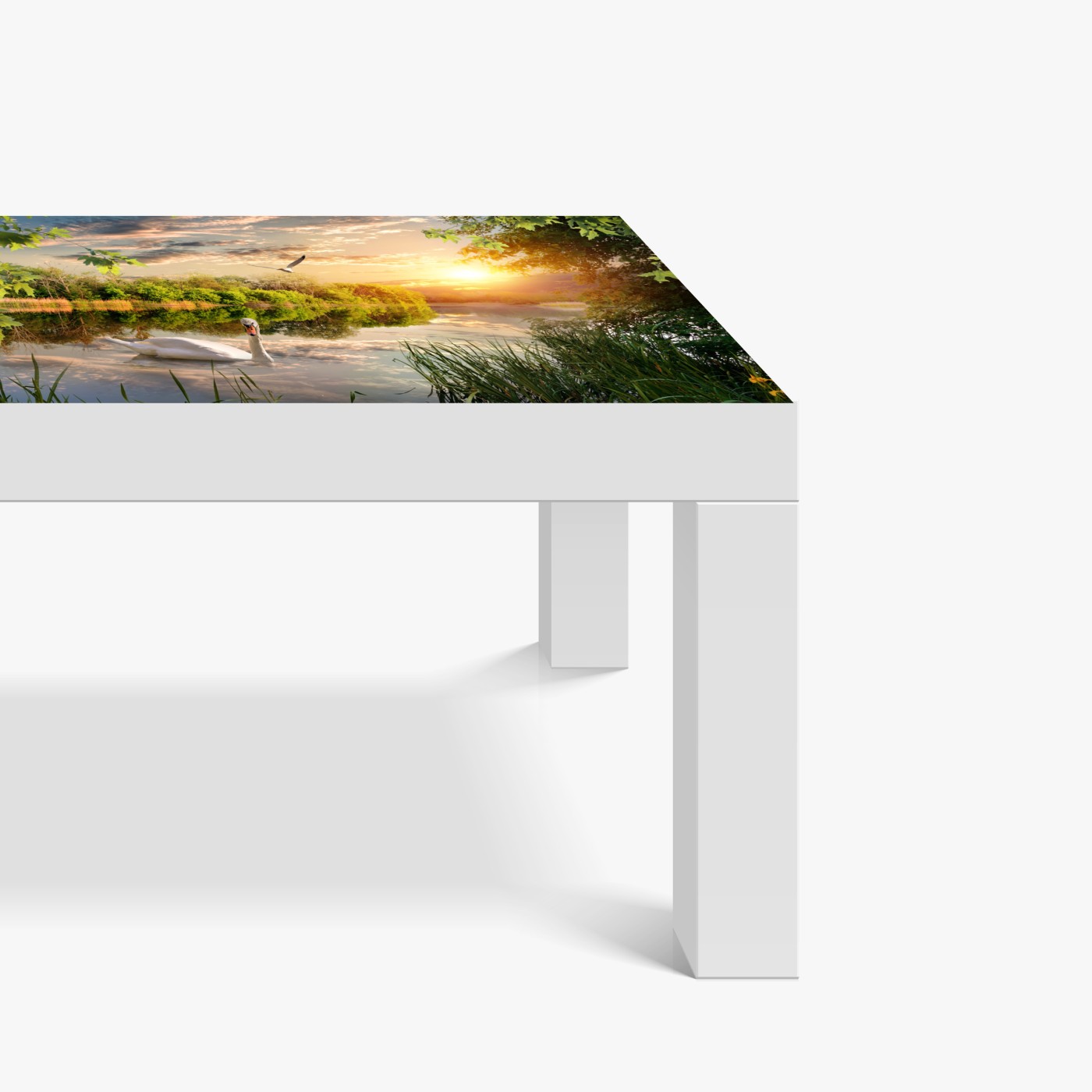 Tischaufkleber und Schreibtischaufkleber Sonnenuntergang mit schwan auf stillem see