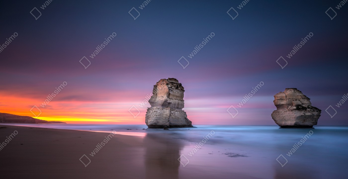 Tischaufkleber und Schreibtischaufkleber Ruhige küstenlandschaft mit felsformationen bei sonnenuntergang