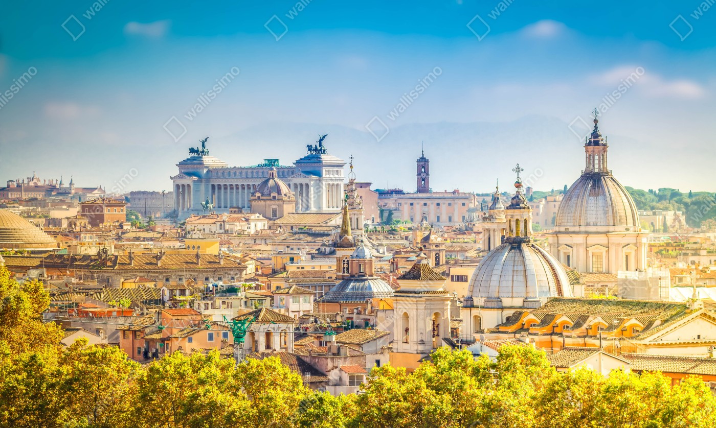 Tischaufkleber und Schreibtischaufkleber Sonnige skyline von Rom mit kuppeln