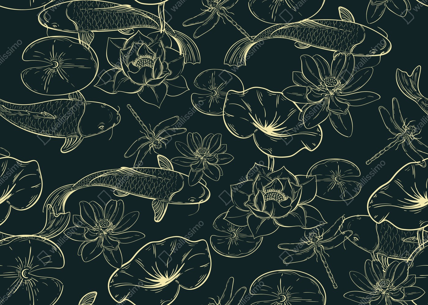 Tischaufkleber und Schreibtischaufkleber Handgezeichnetes koi- und lotusmuster