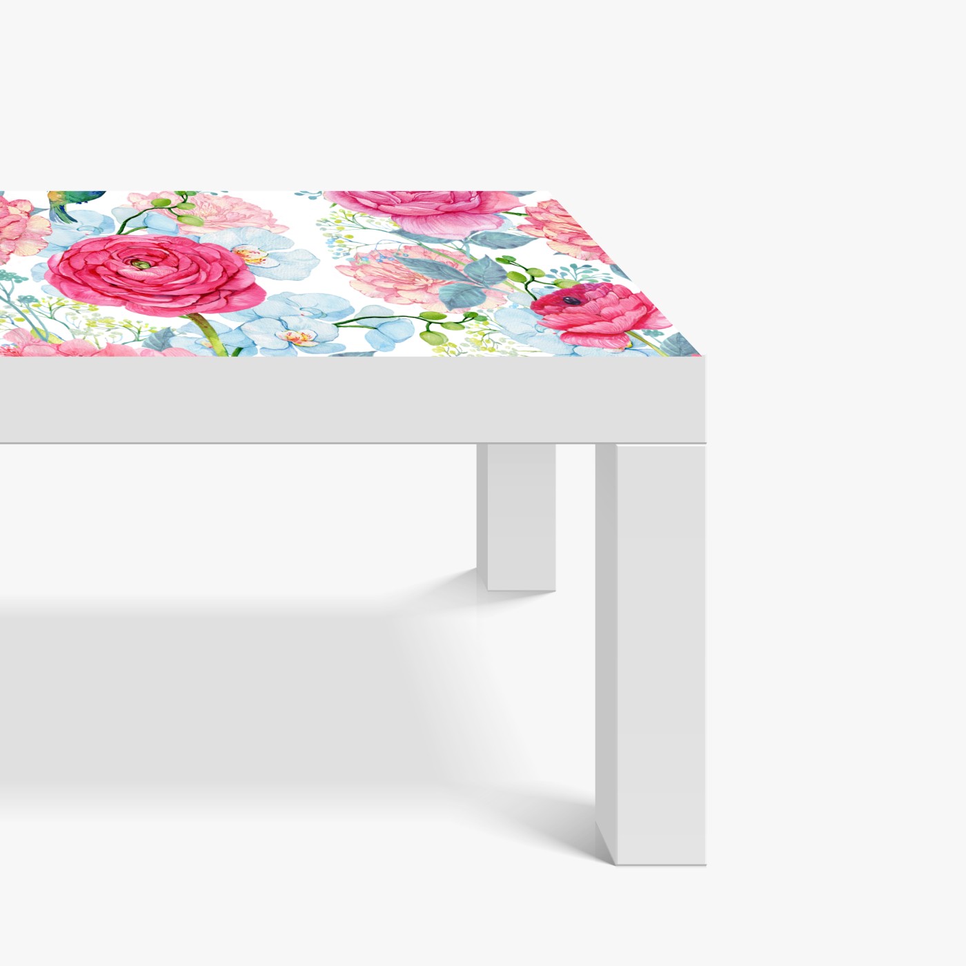 Tischaufkleber und Schreibtischaufkleber Rosa aquarell blumengarten mit kolibri
