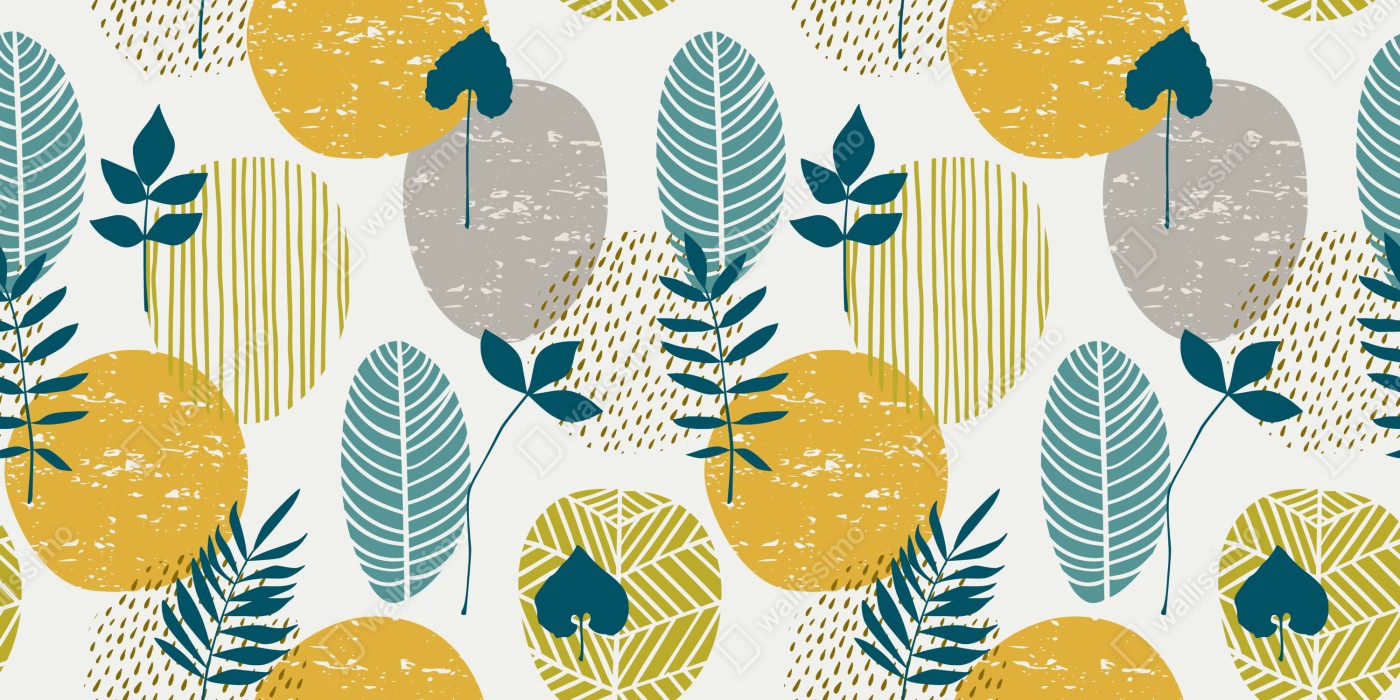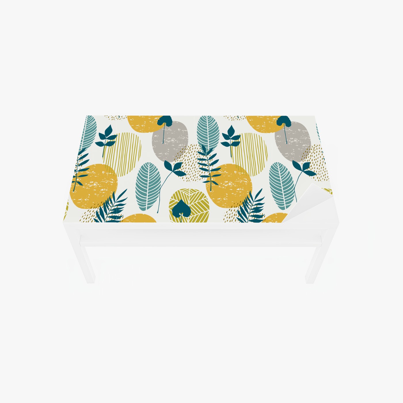 Tischaufkleber und Schreibtischaufkleber Türkis-senfgelbes botanisches muster