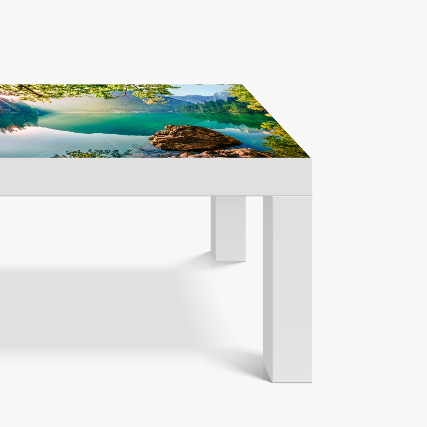 Tischaufkleber und Schreibtischaufkleber Morgendliche szene am Fusine-see mit Mangart