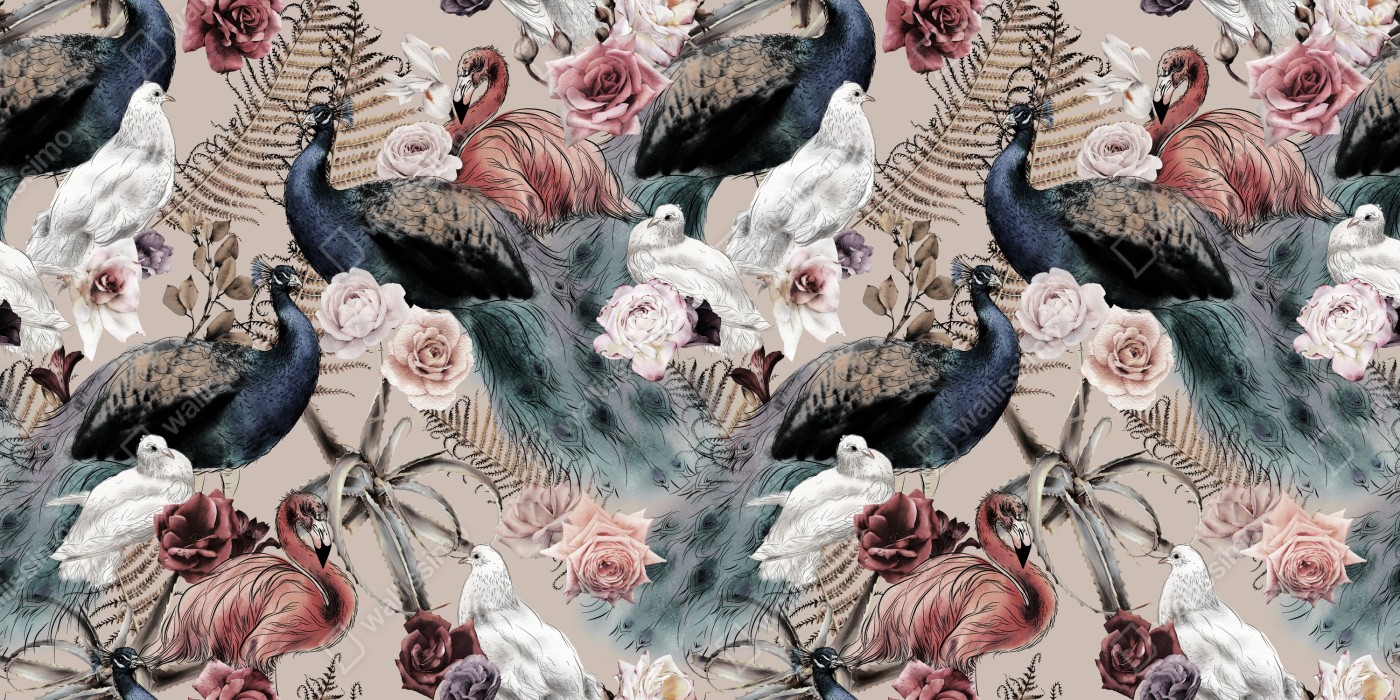 Tischaufkleber und Schreibtischaufkleber Aquarellmuster mit vögeln und rosen
