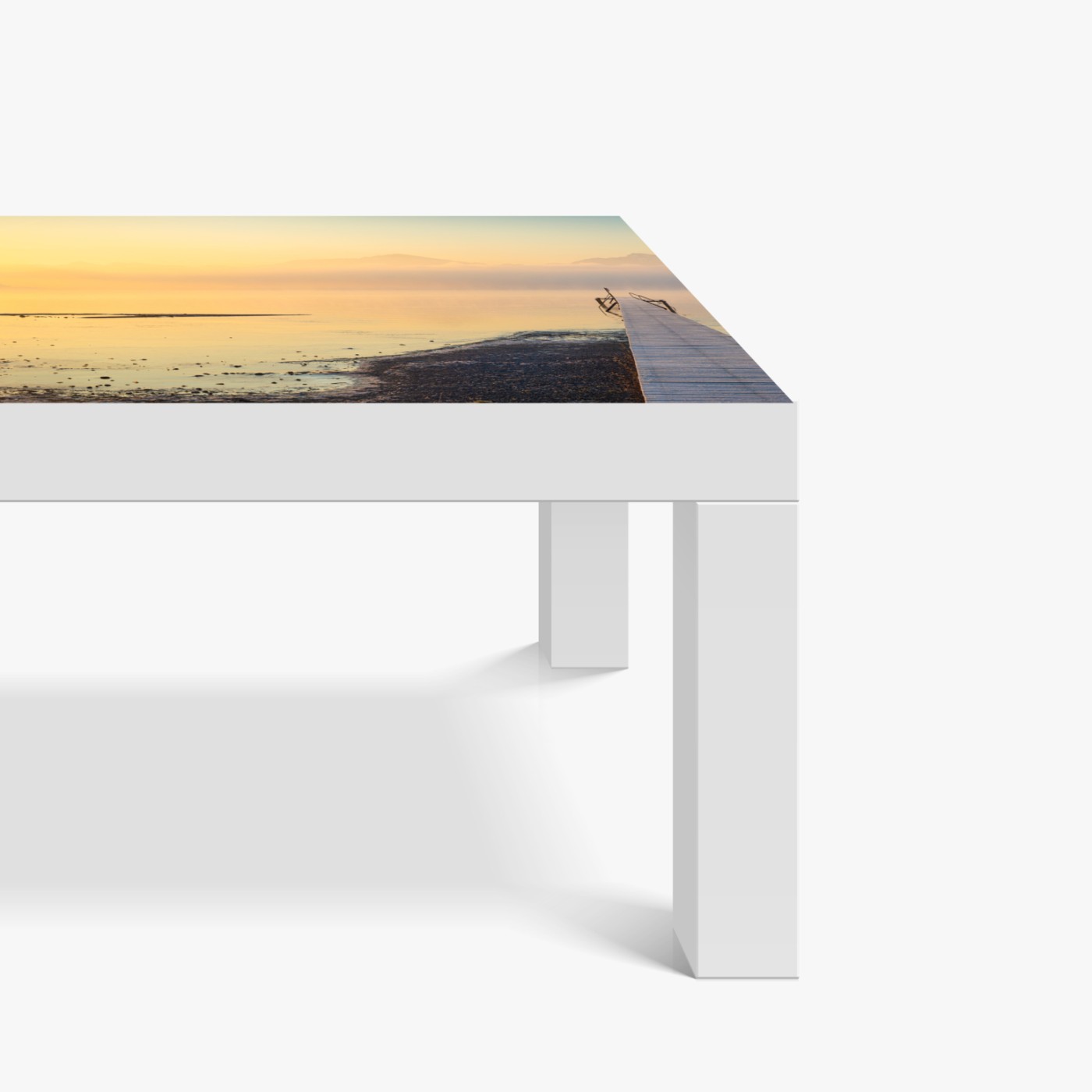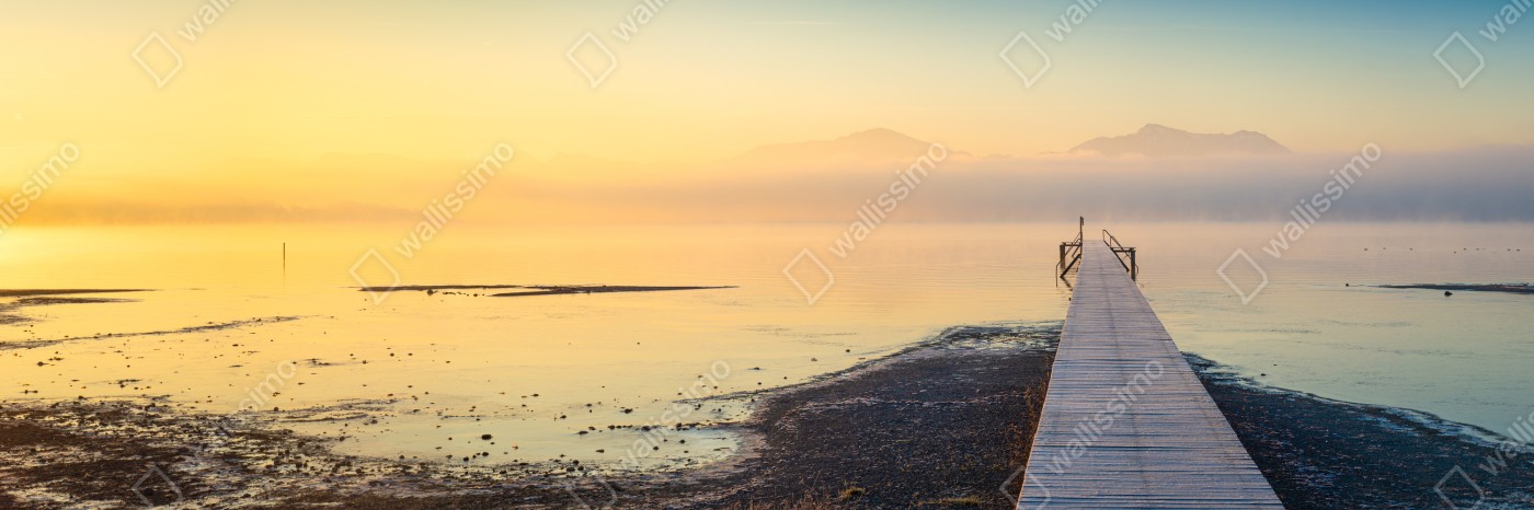 Tischaufkleber und Schreibtischaufkleber Nebliger sonnenaufgang über holzsteg