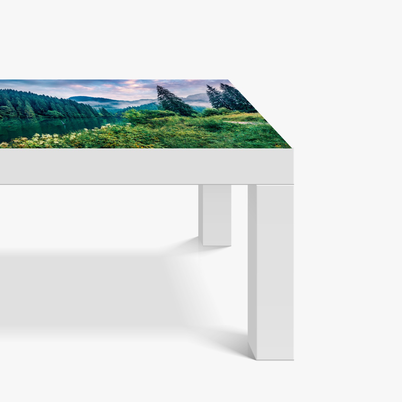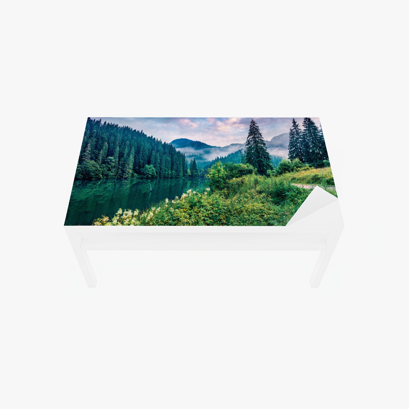 Tischaufkleber und Schreibtischaufkleber Nebliger sonnenaufgang über Lacu Rosu