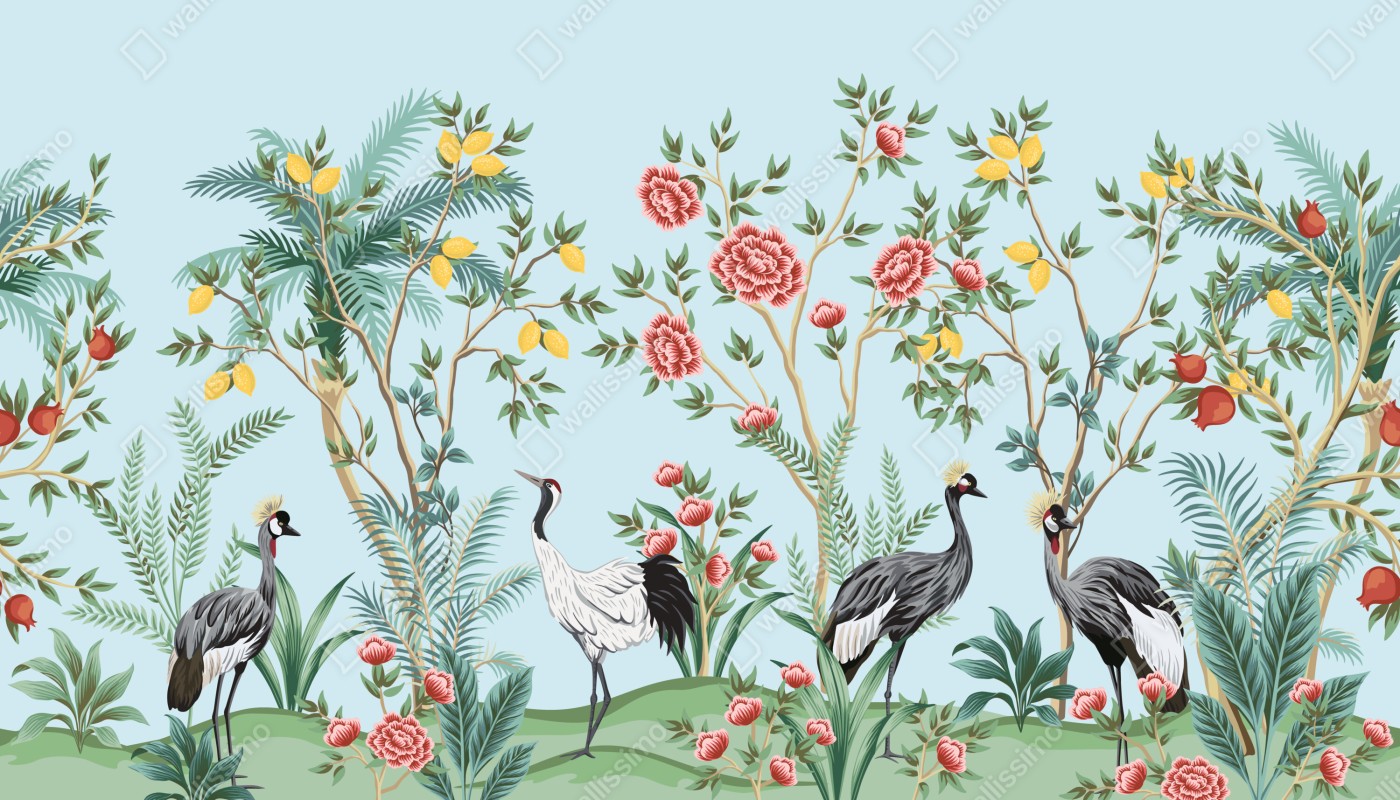 Tischaufkleber und Schreibtischaufkleber eleganter kranichgarten mit blüten