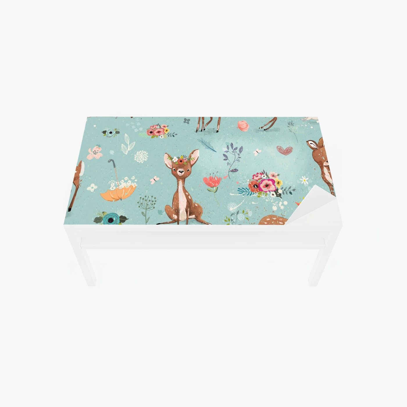 Tischaufkleber und Schreibtischaufkleber Pastellmuster mit rehkitzen und hasen