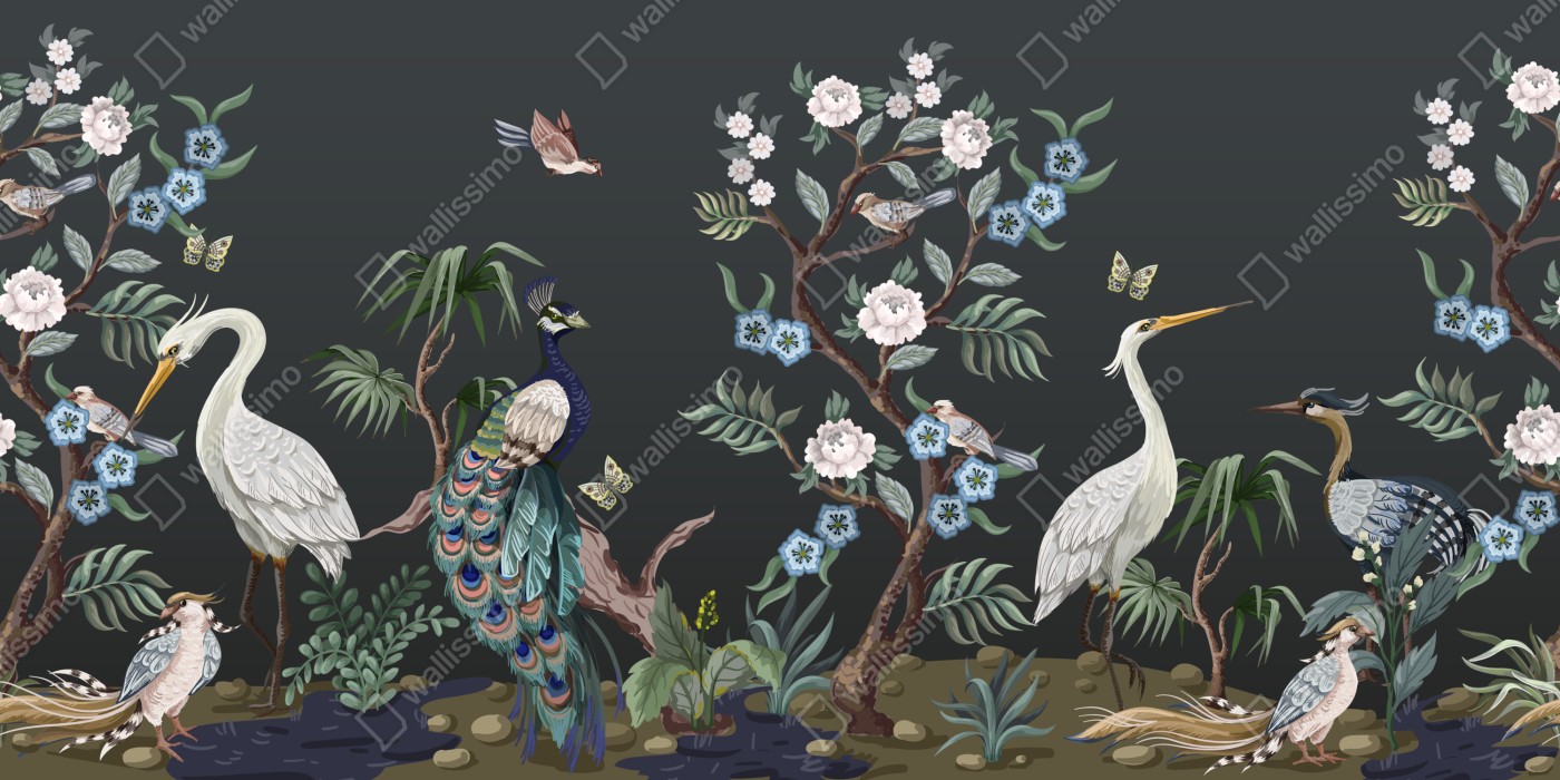 Tischaufkleber und Schreibtischaufkleber Pfau und reiher im blumenmuster