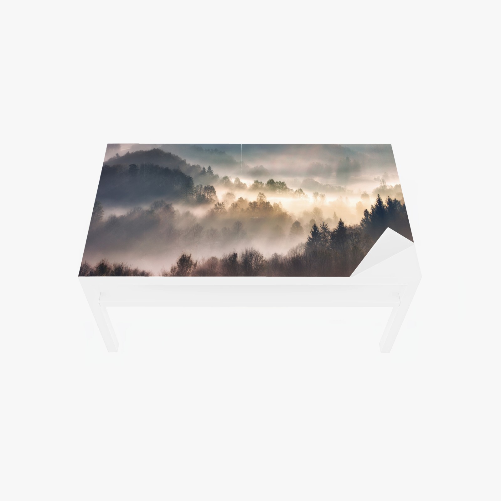 Tischaufkleber und Schreibtischaufkleber Nebliger wald im morgengrauen