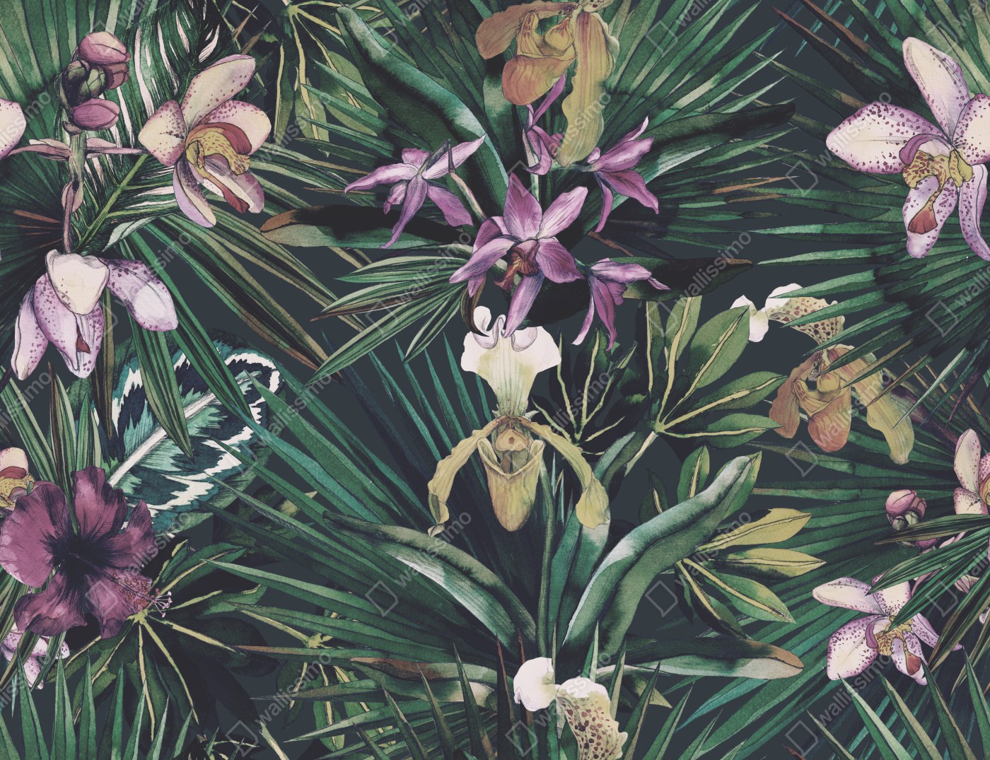 Tischaufkleber und Schreibtischaufkleber Tropische orchideen in aquarell und palmblättern