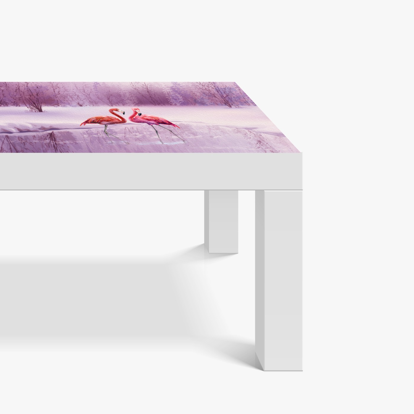 Tischaufkleber und Schreibtischaufkleber Pastell flamingos über winterlichem see