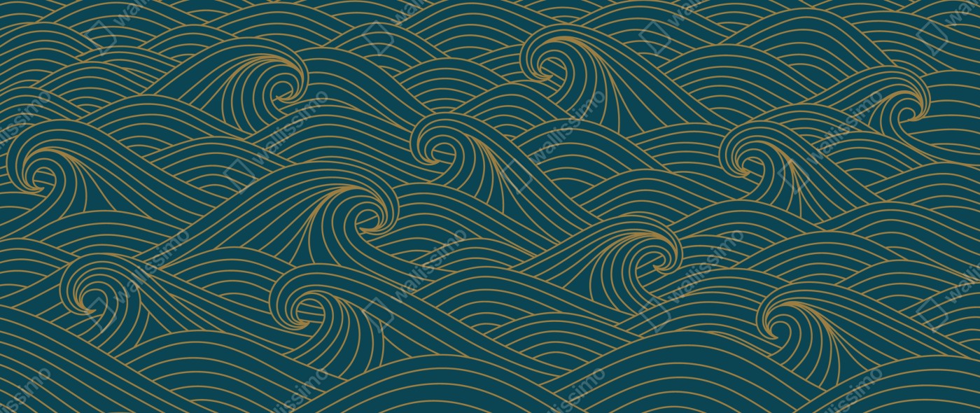 Tischaufkleber und Schreibtischaufkleber Türkiswellenmuster mit goldlinien
