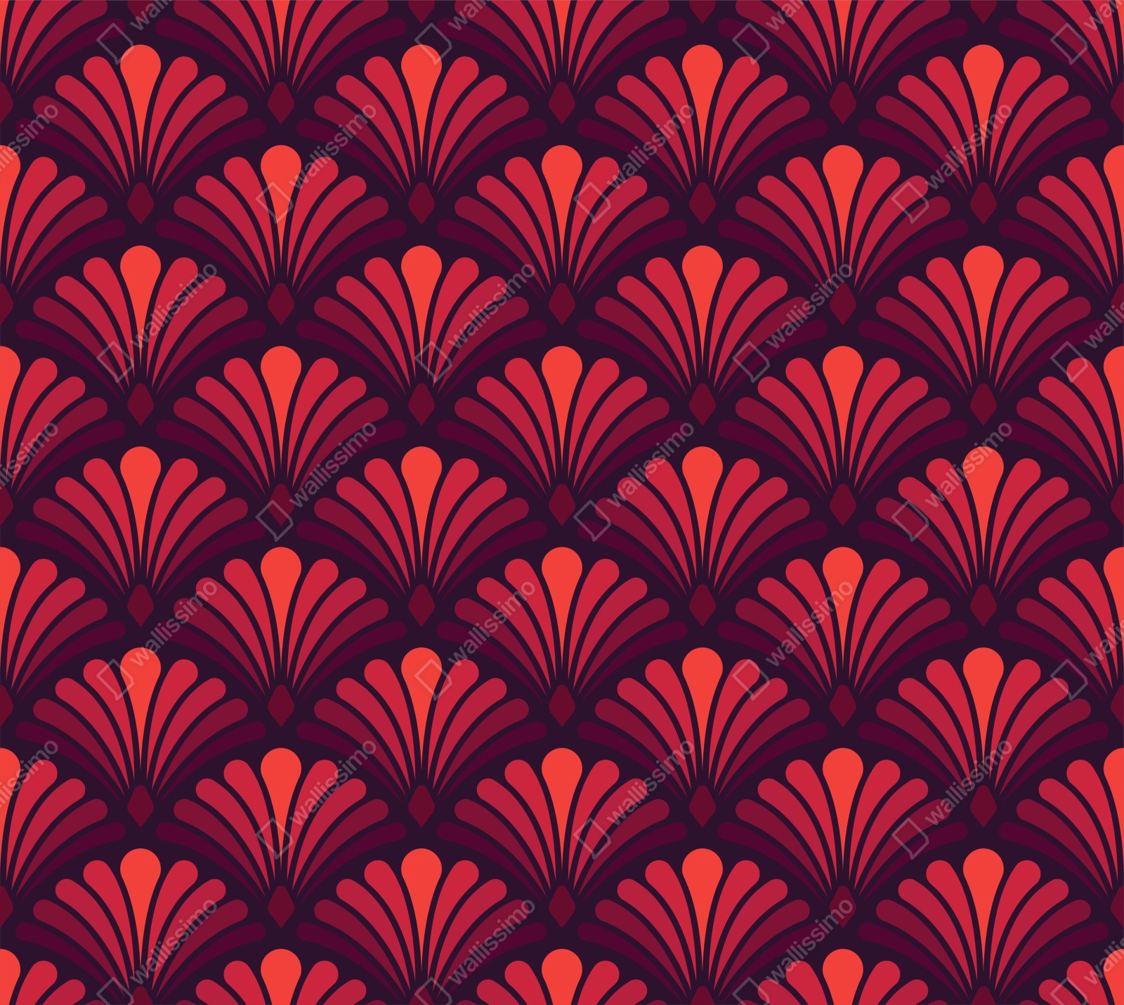 Kräftiges rotes Art-Deco-Muster verleiht Räumen retro-glamour und geometrische Eleganz, ideal als Akzentwand oder gerahmte Wandkunst.