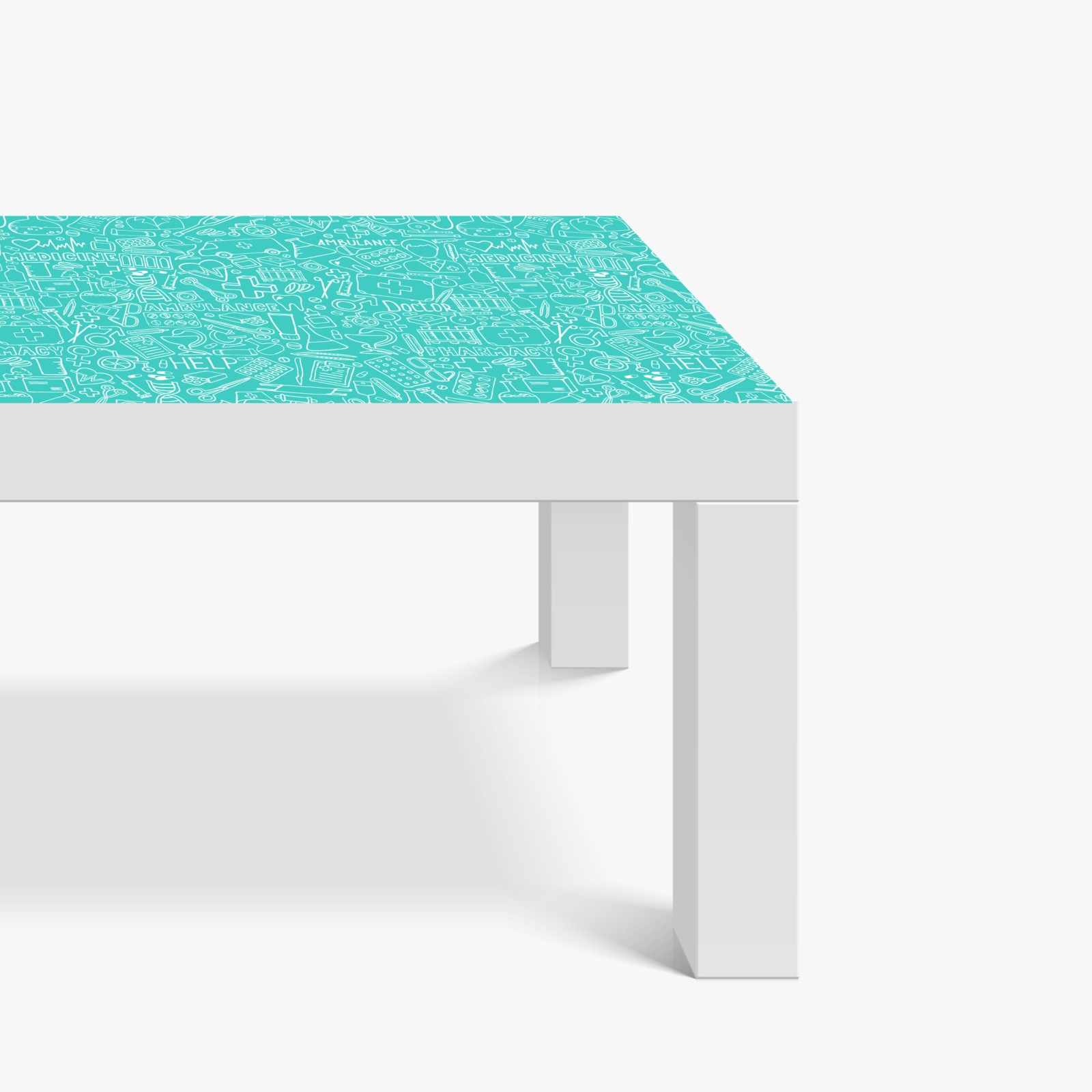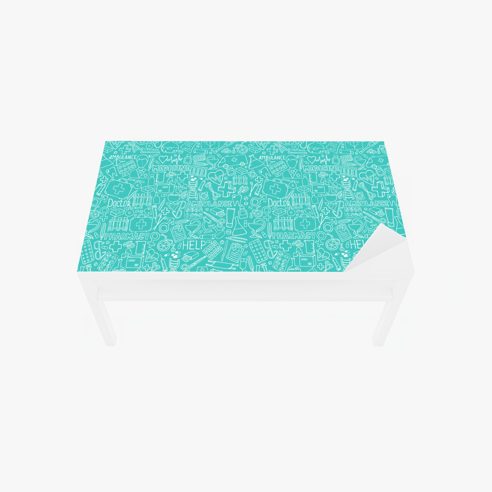 Tischaufkleber und Schreibtischaufkleber türkises nahtloses muster mit medizinischen icons
