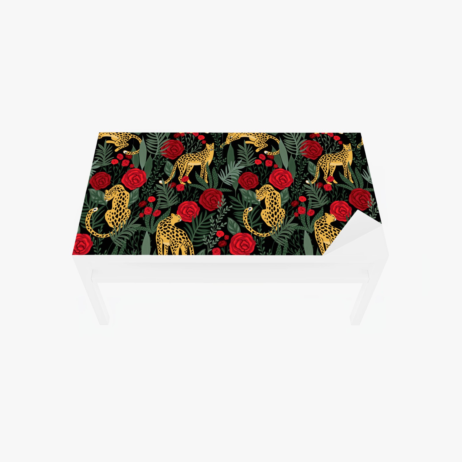 Tischaufkleber und Schreibtischaufkleber Goldene geparden und rote rosen muster