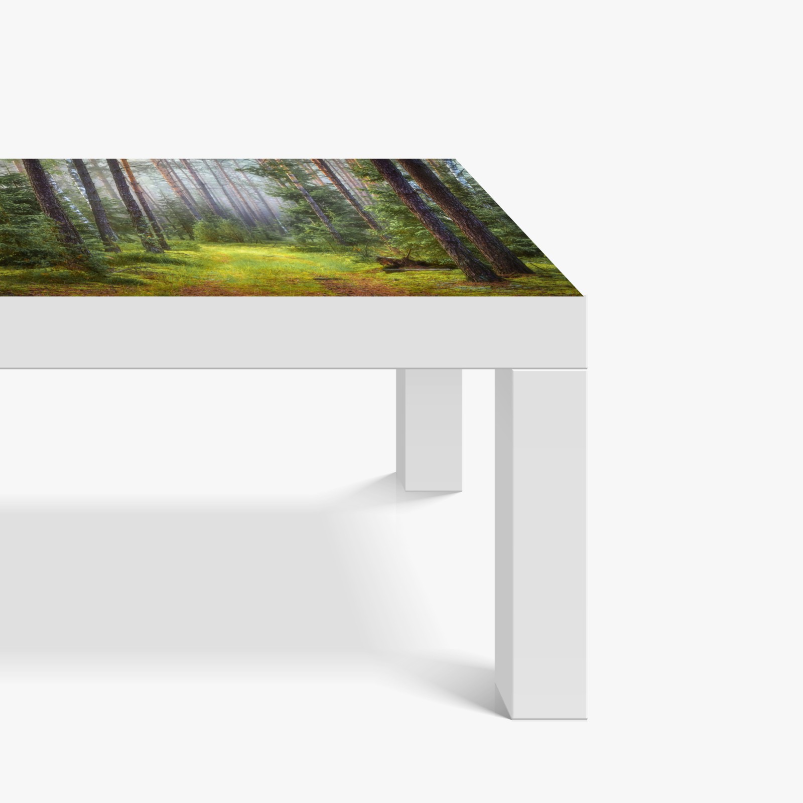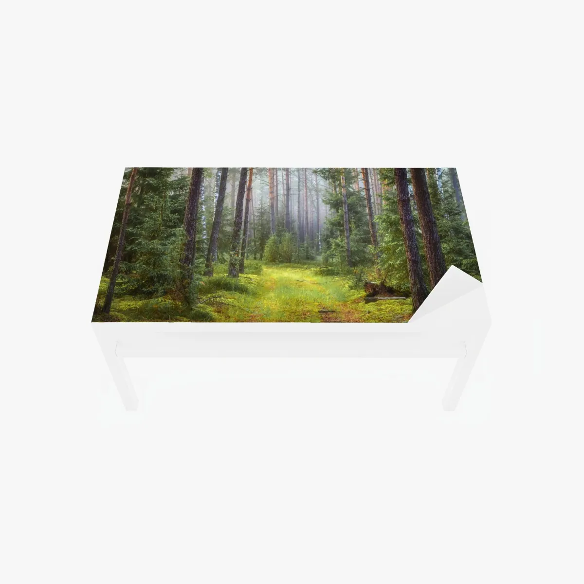 Tischaufkleber und Schreibtischaufkleber nebliger kiefernwald mit pfad