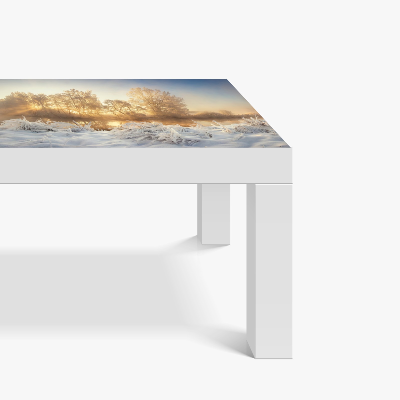 Tischaufkleber und Schreibtischaufkleber goldener wintersonnenaufgang über dem frostigen fluss