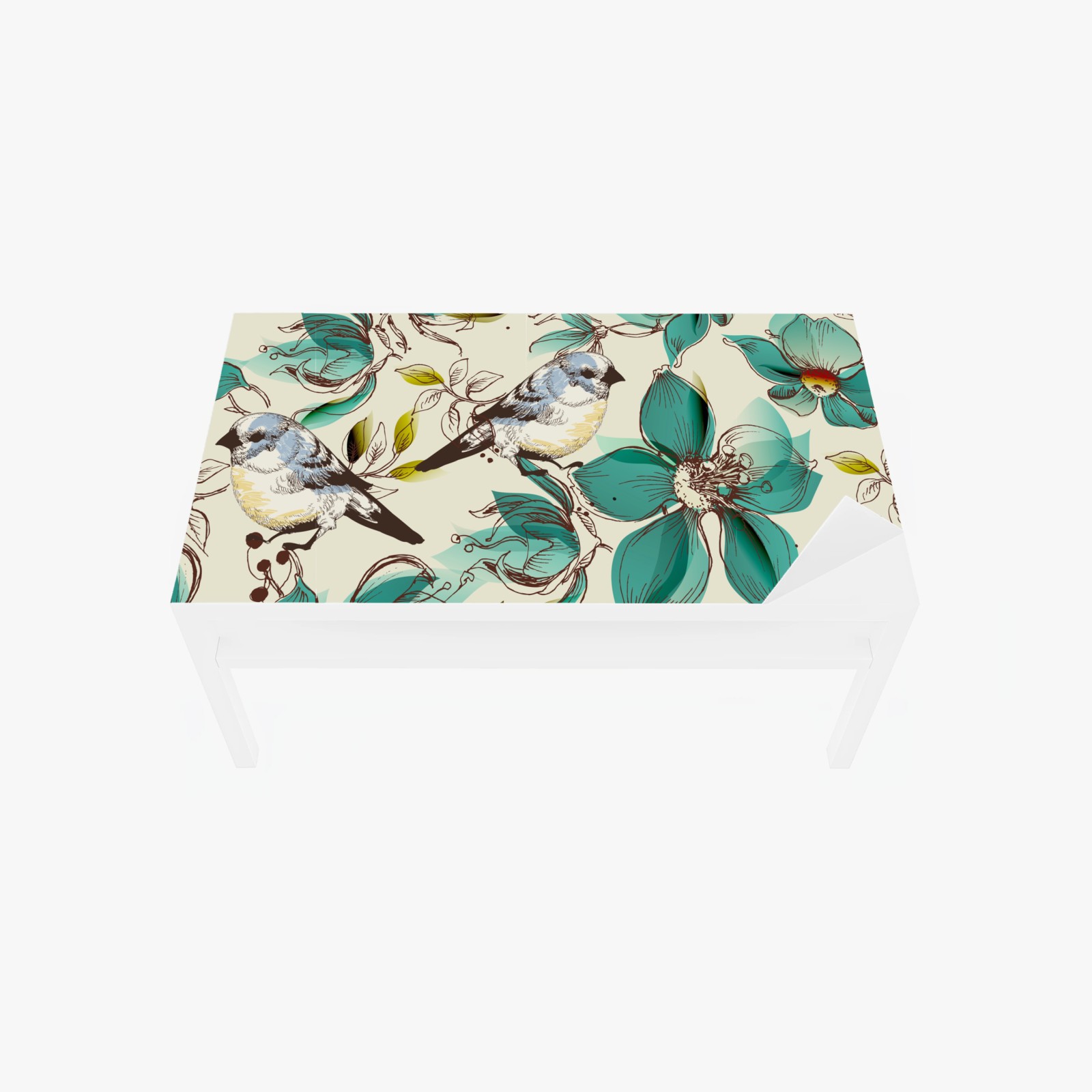 Tischaufkleber und Schreibtischaufkleber Retro türkis blumen- und vogelmuster