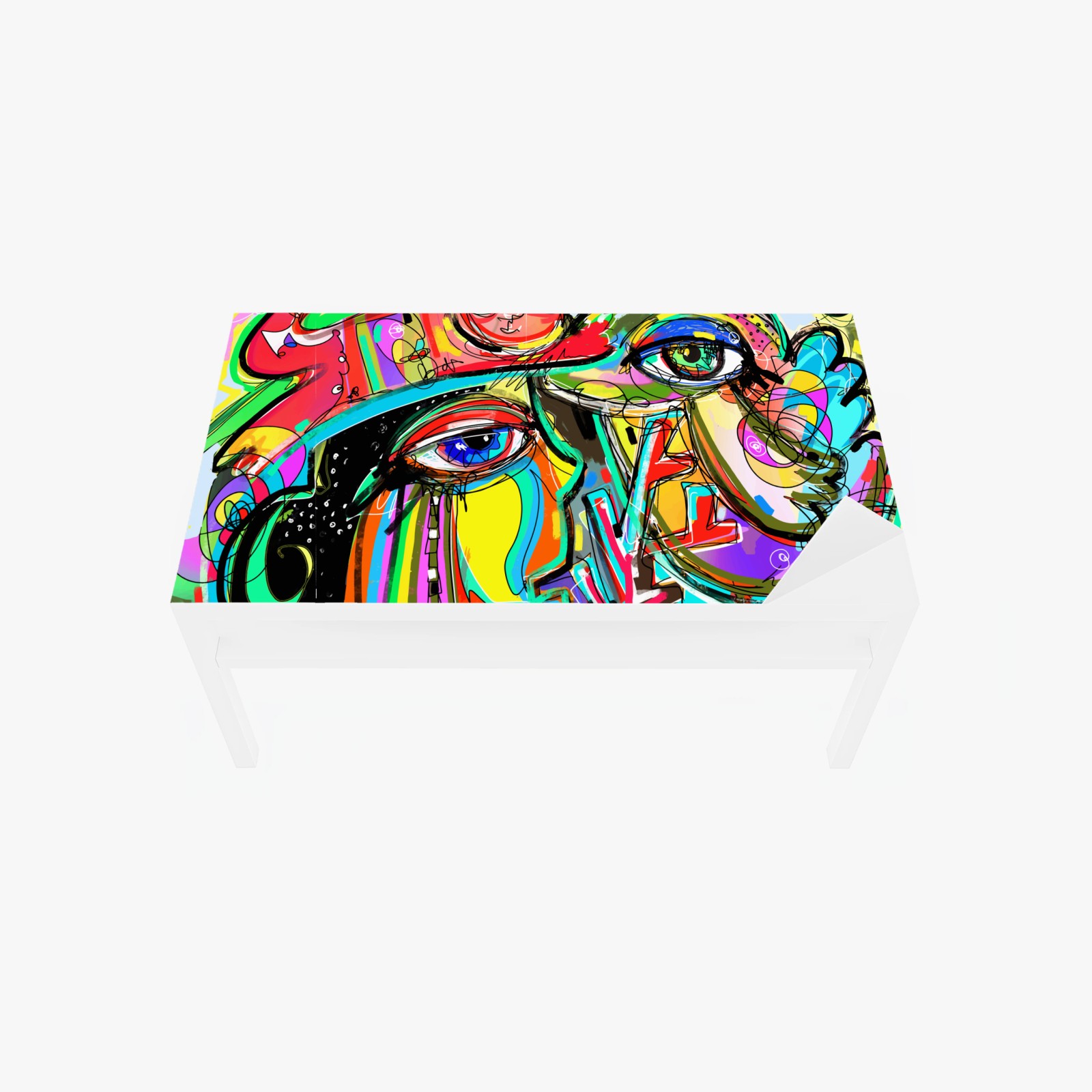 Tischaufkleber und Schreibtischaufkleber Lebendige abstrakte gesichter mit katze und vogel