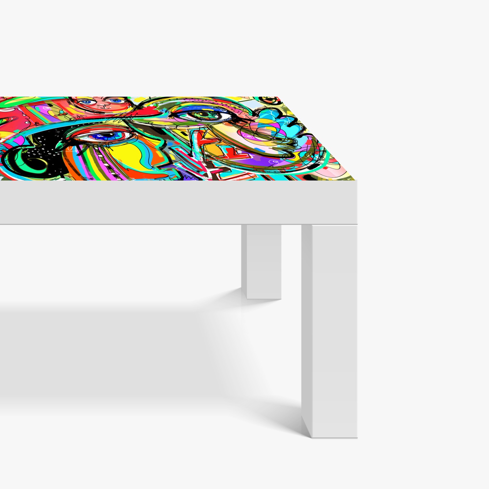 Tischaufkleber und Schreibtischaufkleber lebendige abstrakte gesichter mit katze und vogel