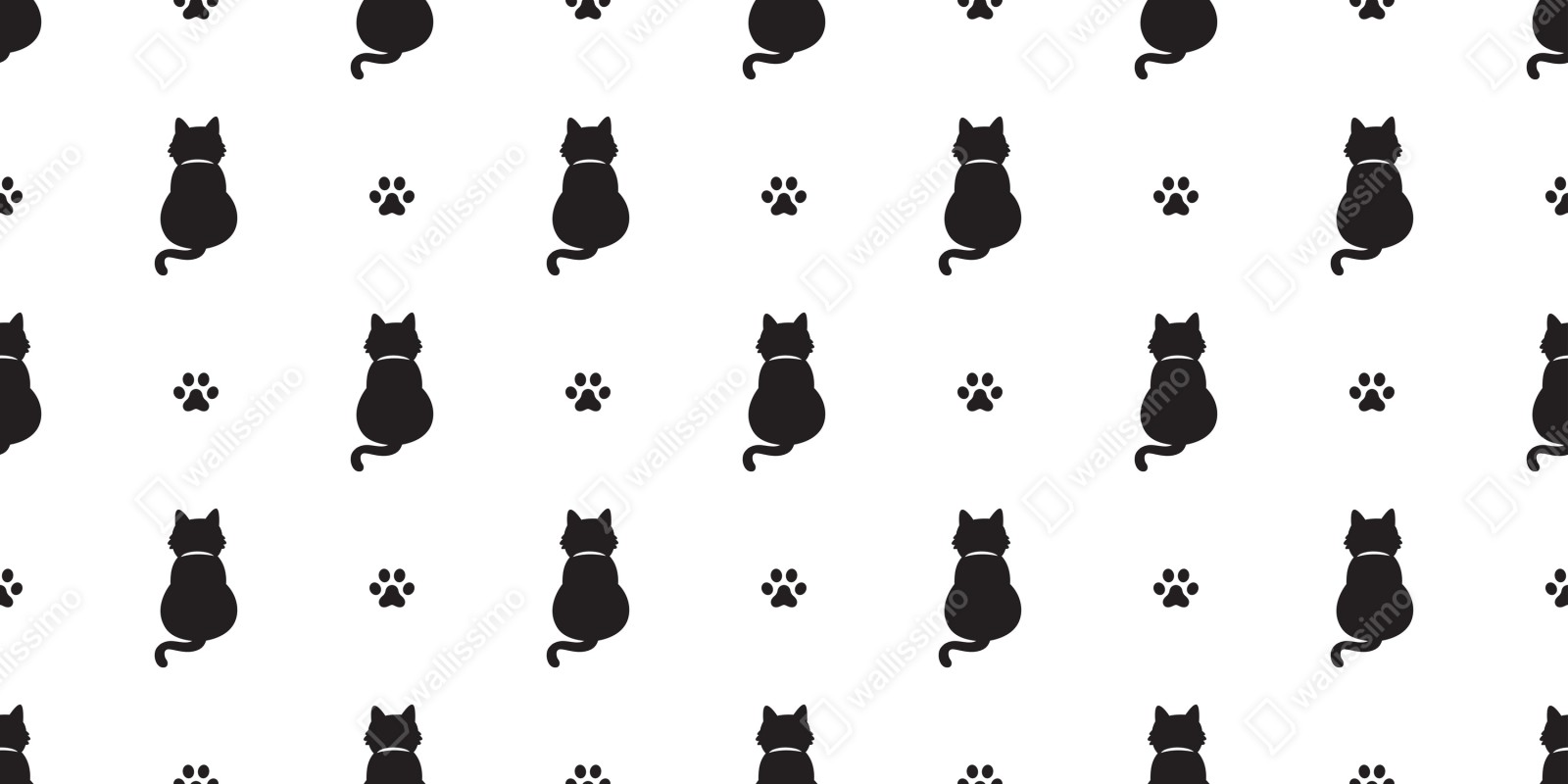 niedliches muster mit schwarzen katzensilhouetten und pfoten in einem klaren, minimalistischen design, perfekt für kinderzimmer, schlafzimmer und moderne wohnräume.