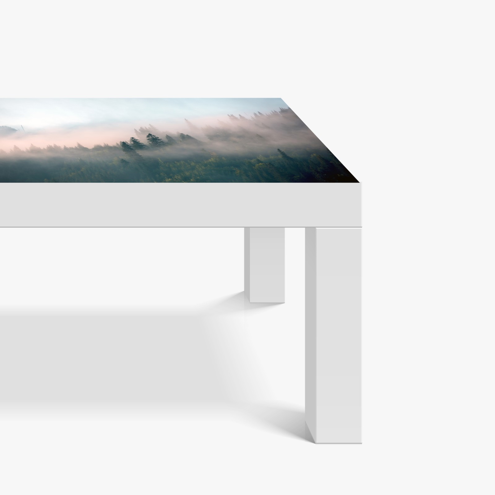 Tischaufkleber und Schreibtischaufkleber nebliger morgenwald