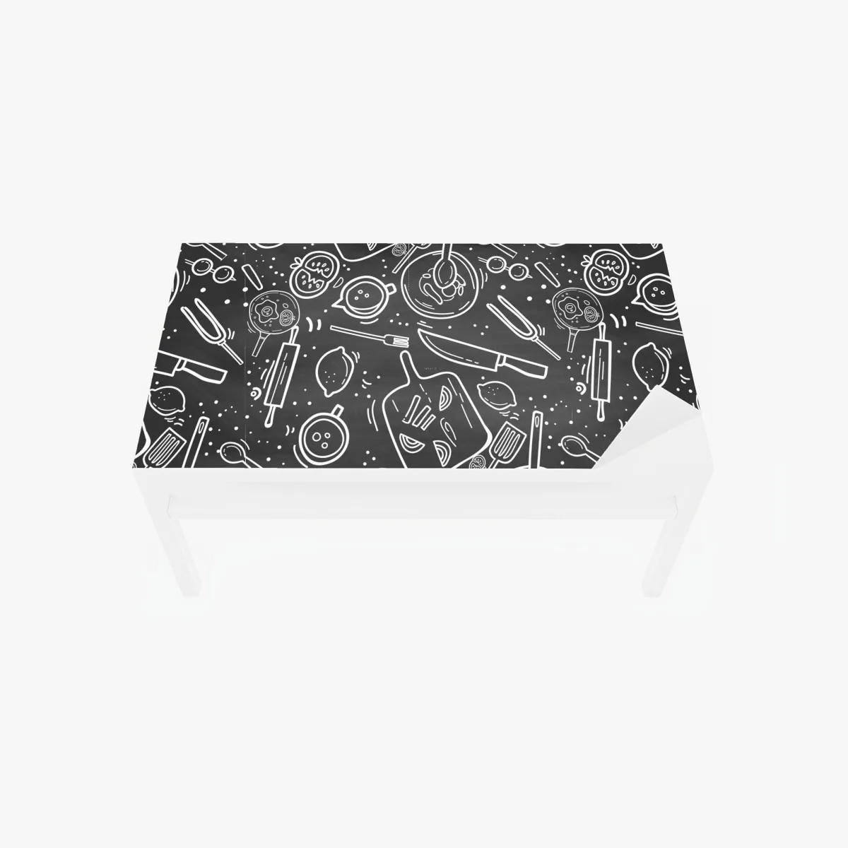 Bringen Sie mit diesem monochromen Tafel-Doodle-Muster verspielte Kochatmosphäre in Ihre Küche, perfekt für moderne und minimalistische Räume.