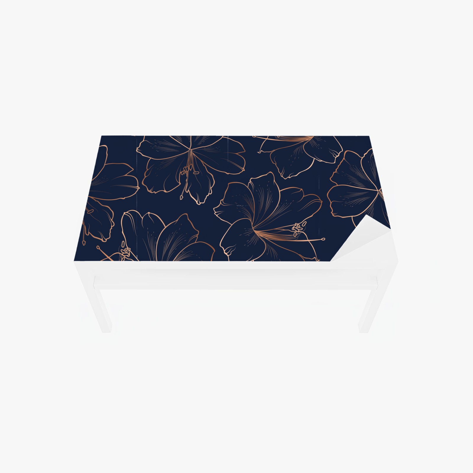 Tischaufkleber und Schreibtischaufkleber Dunkelblaues muster mit goldenen blumenkonturen