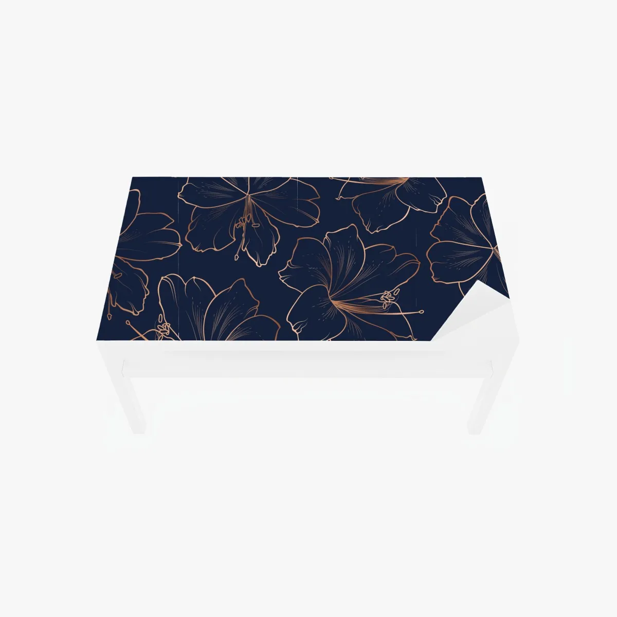 Tischaufkleber und Schreibtischaufkleber dunkelblaues muster mit goldenen blumenkonturen