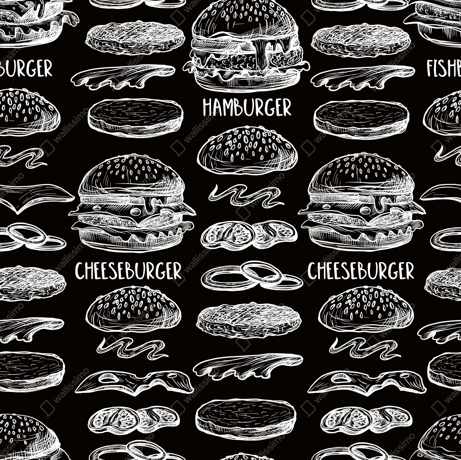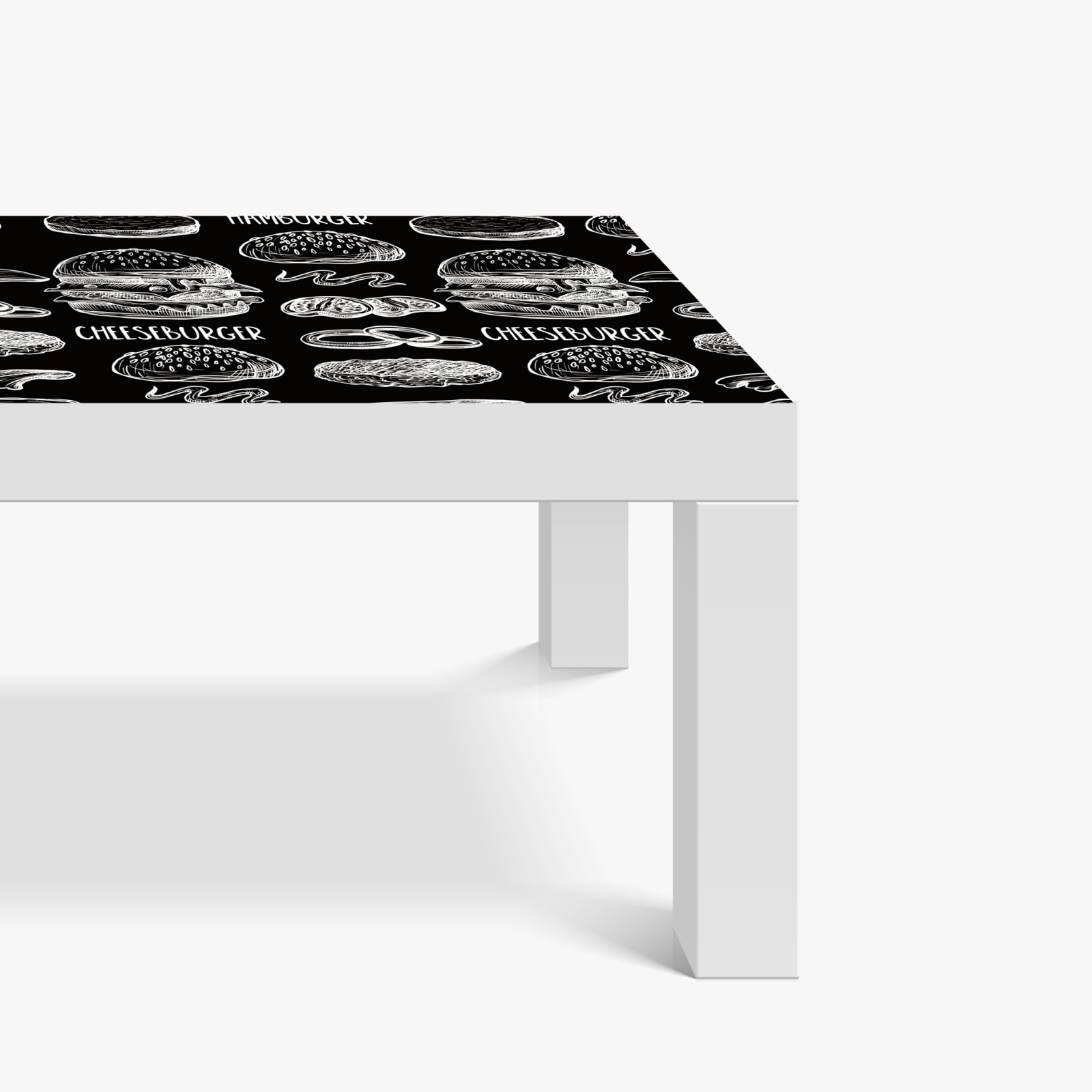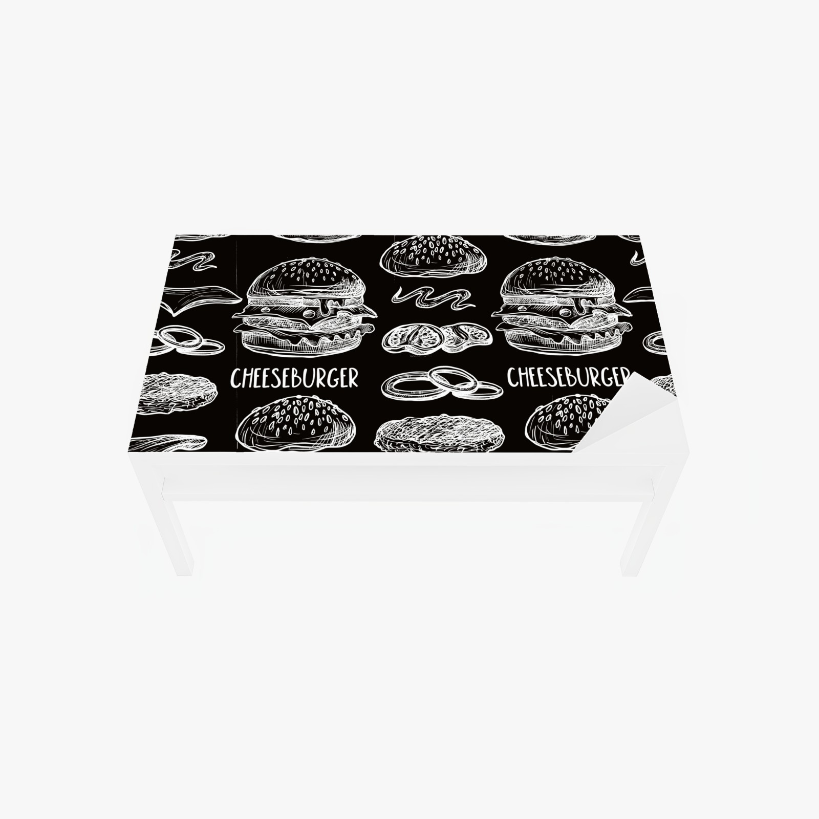 Tischaufkleber und Schreibtischaufkleber handgezeichnetes burger-muster auf schwarzem hintergrund