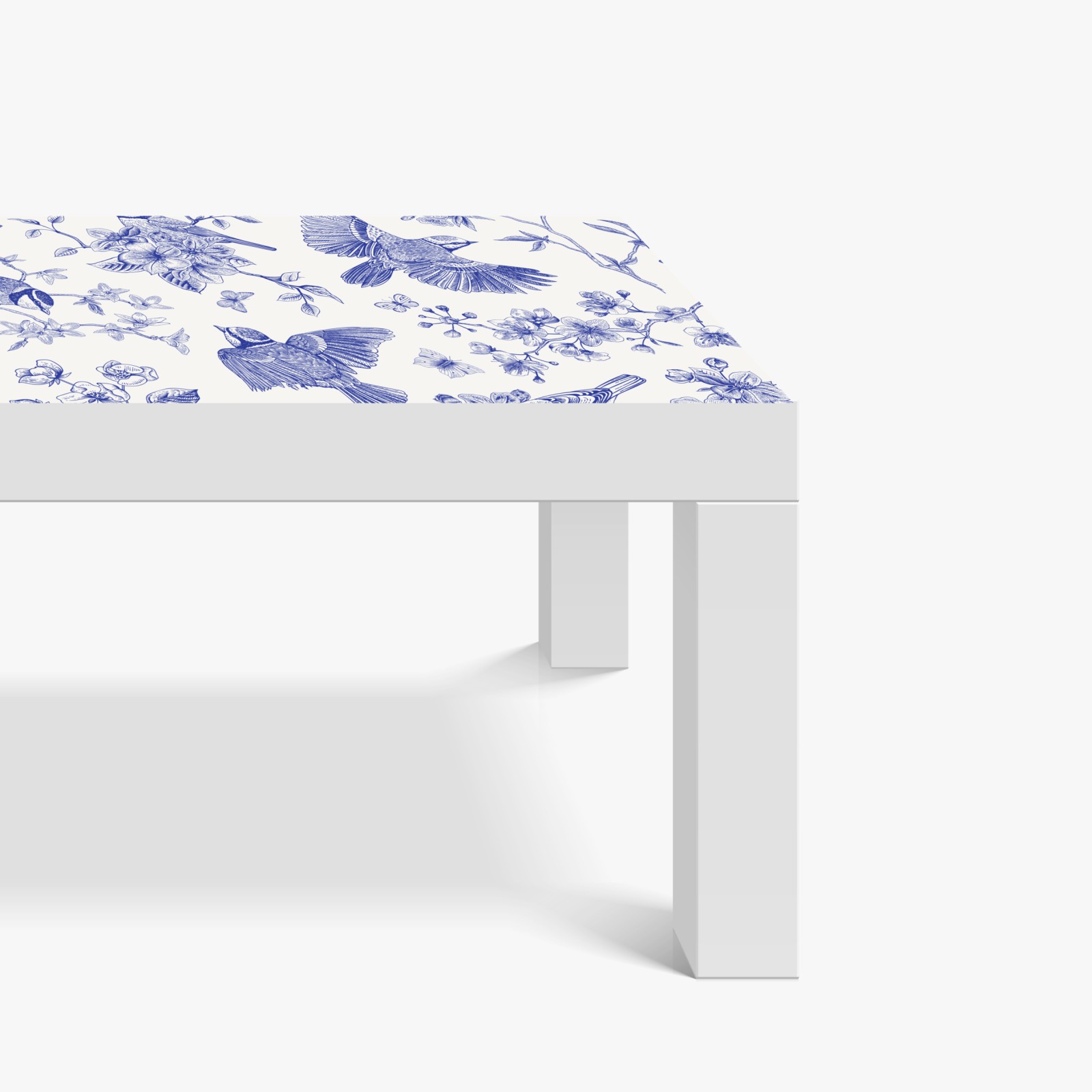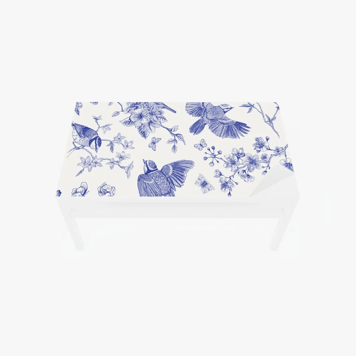 Tischaufkleber und Schreibtischaufkleber blaues muster mit vögeln und blüten im vintage-stil