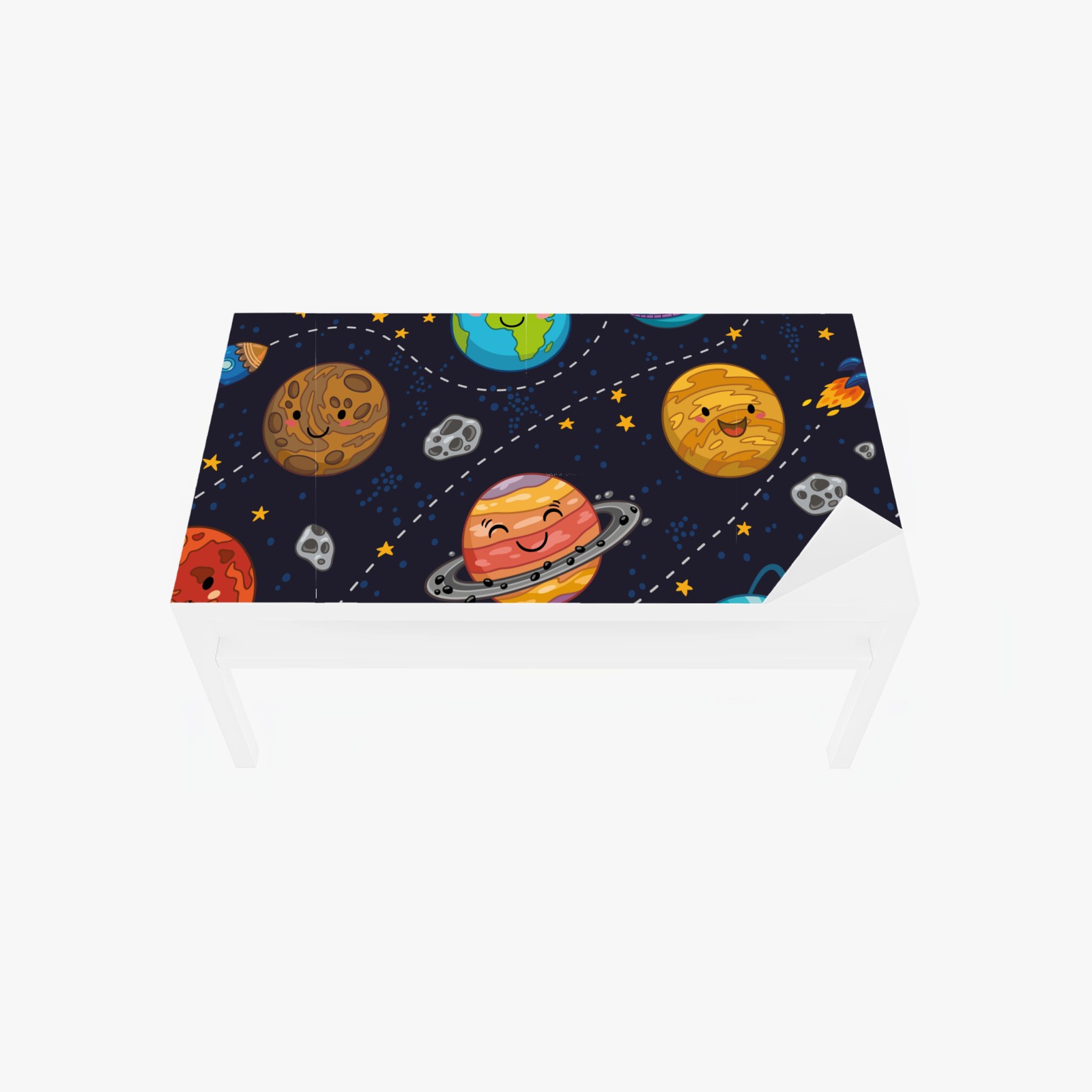 Tischaufkleber und Schreibtischaufkleber Lächelnde planeten im verspielten weltraummuster