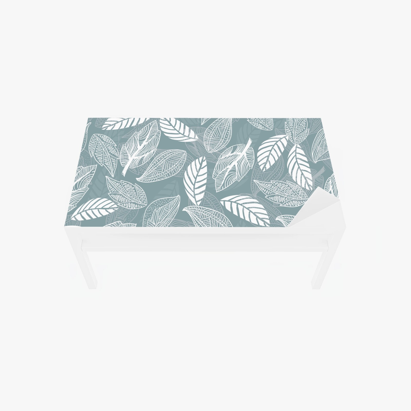 Tischaufkleber und Schreibtischaufkleber Handgezeichnetes blättermuster auf türkisfarbenem hintergrund