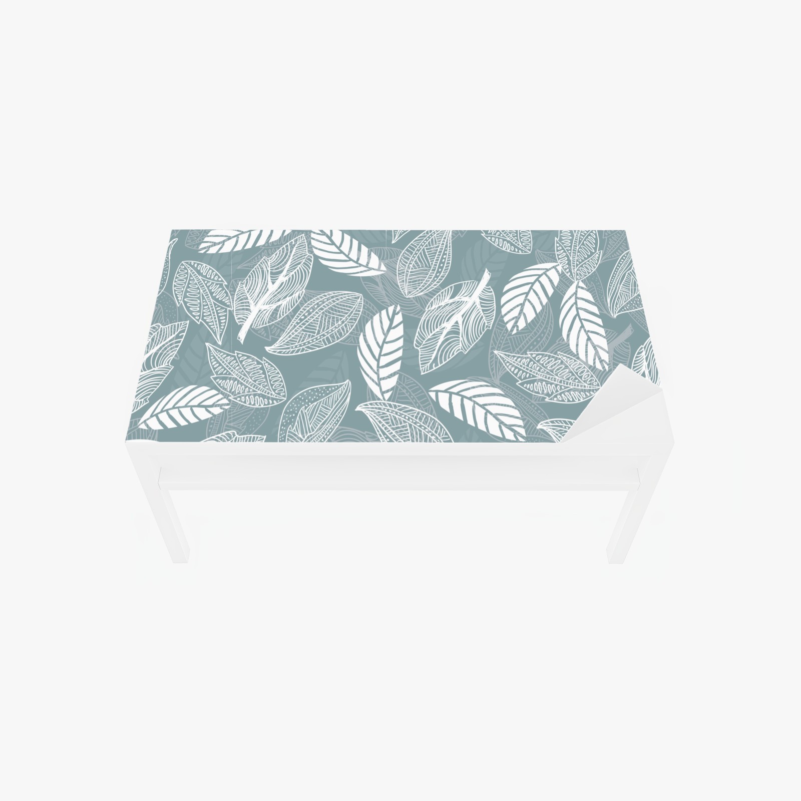 Tischaufkleber und Schreibtischaufkleber handgezeichnetes blättermuster auf türkisfarbenem hintergrund
