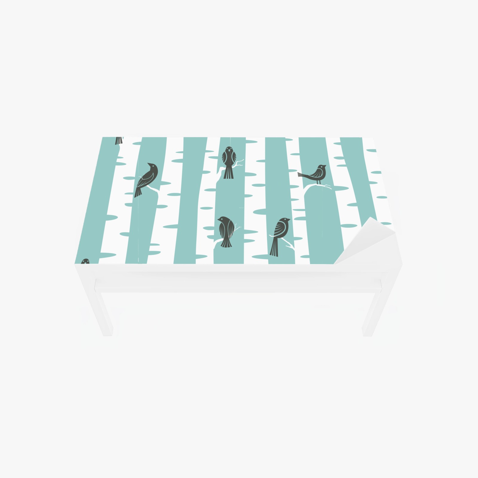 Tischaufkleber und Schreibtischaufkleber Türkis birkenwald mit vögeln