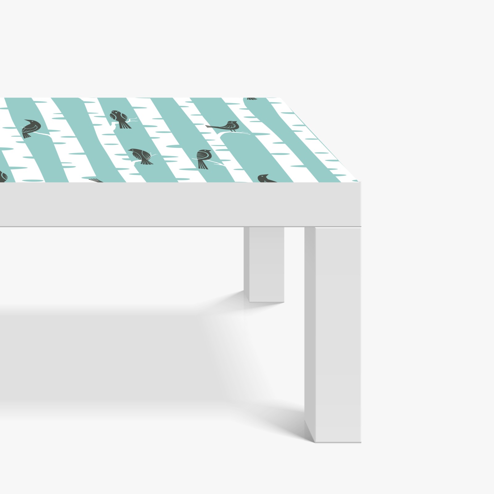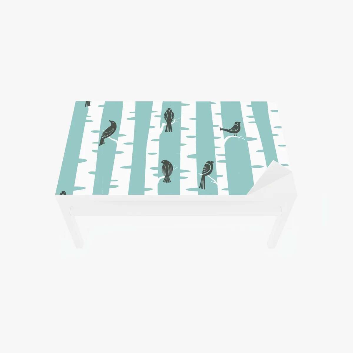 Tischaufkleber und Schreibtischaufkleber türkis birkenwald mit vögeln
