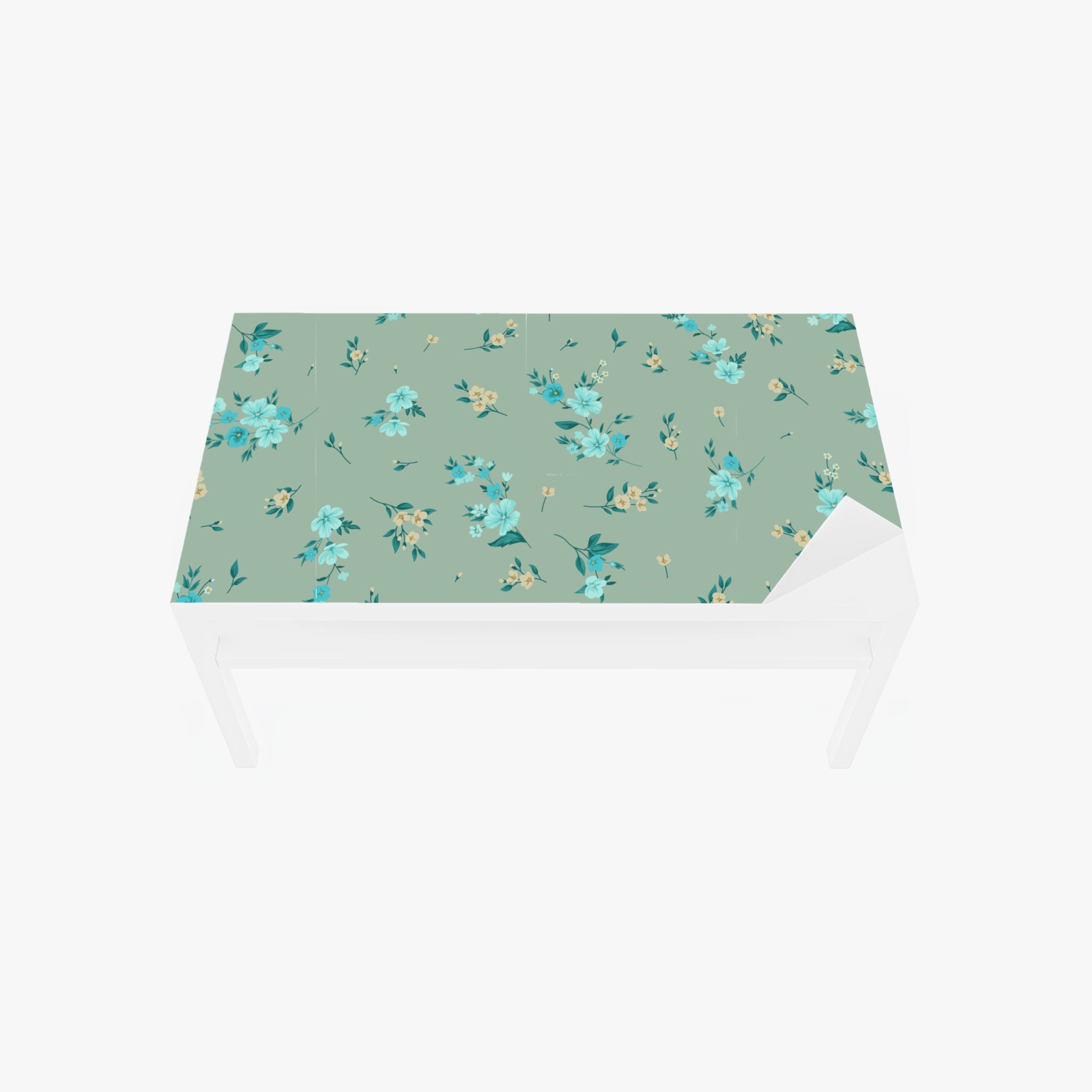 Tischaufkleber und Schreibtischaufkleber Pastell türkis blumenmuster auf salbeigrünem hintergrund
