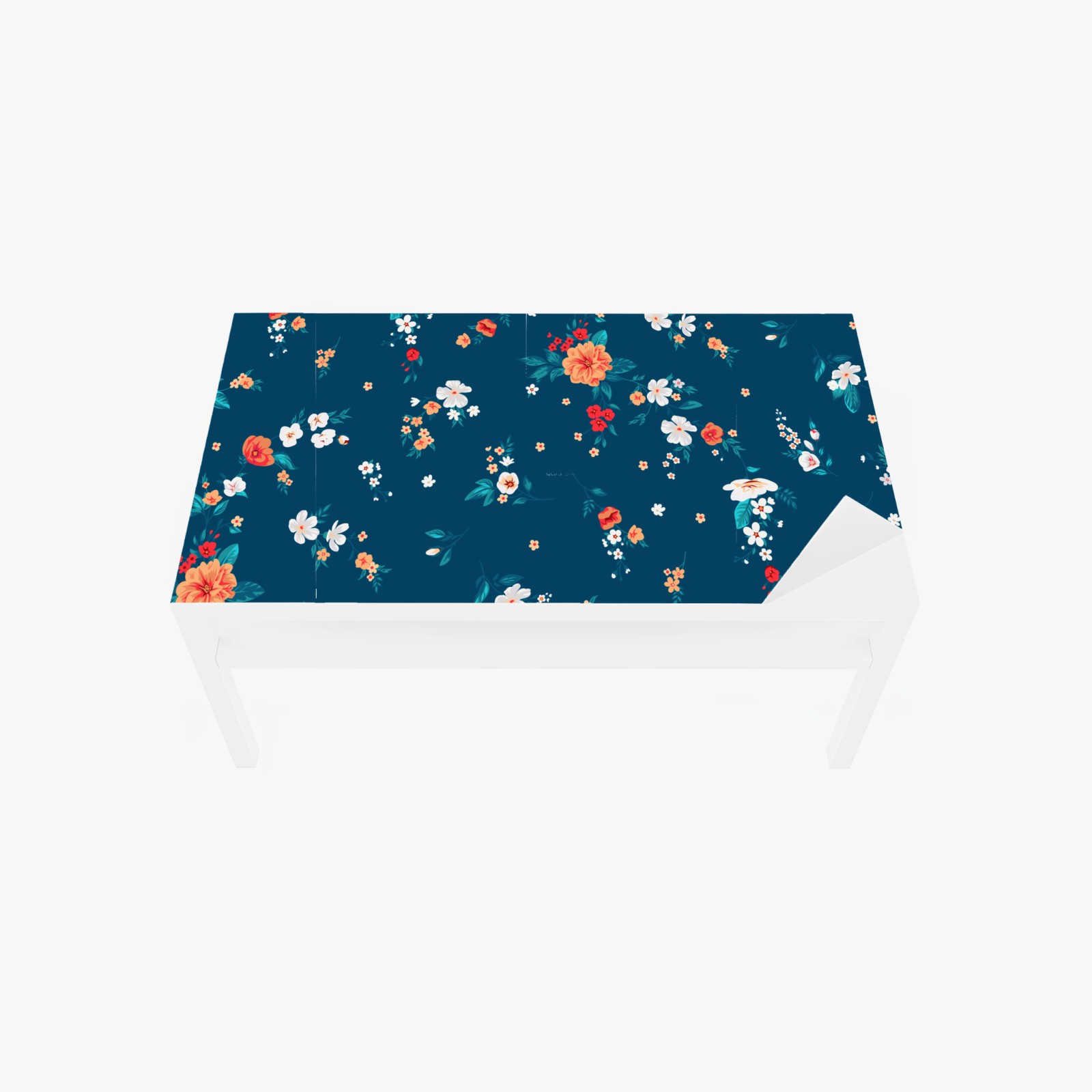 Tischaufkleber und Schreibtischaufkleber Zartes verstreutes blumenmuster auf tiefem türkis