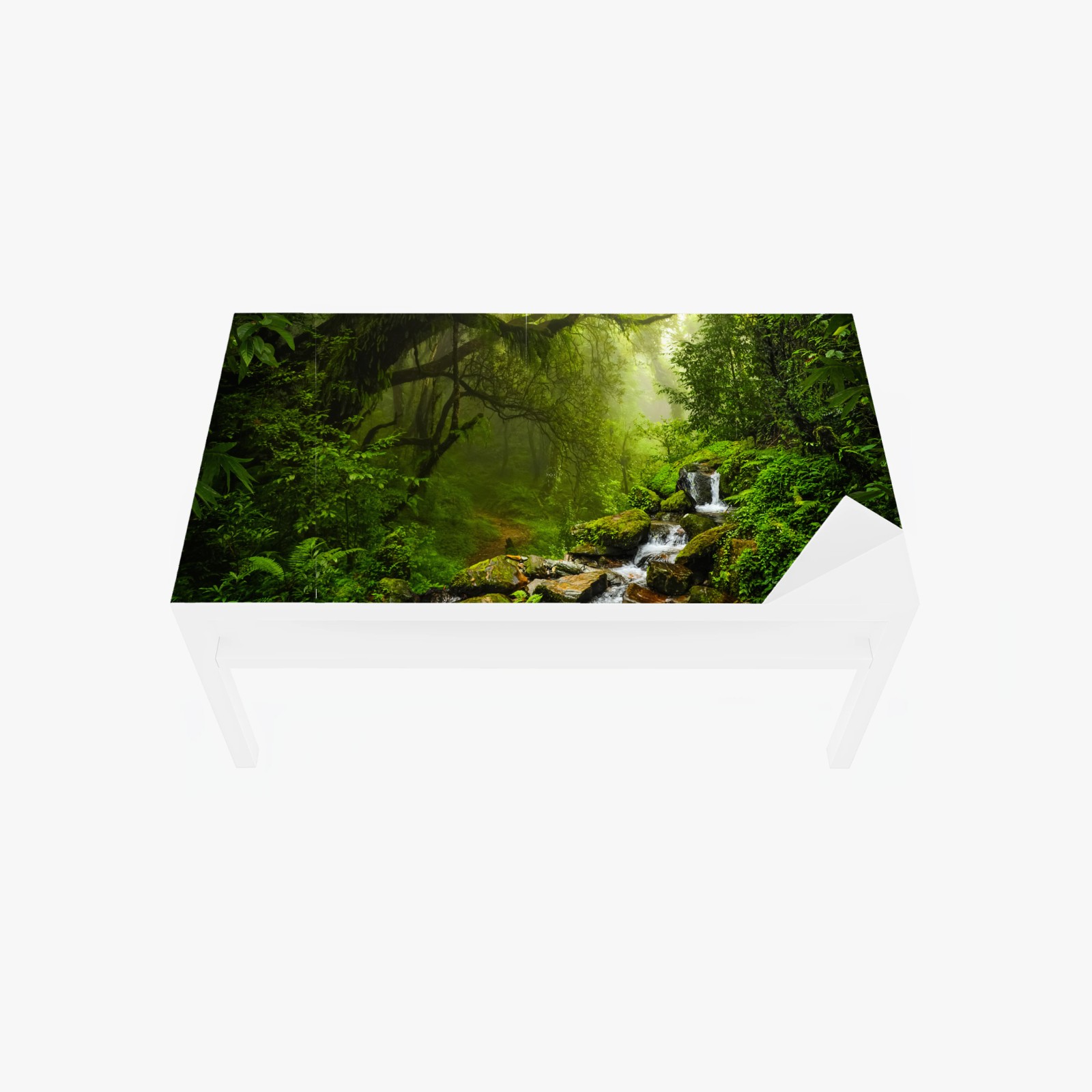 Tischaufkleber und Schreibtischaufkleber Üppiger nebliger waldwasserfall